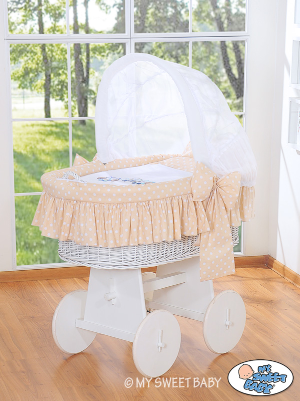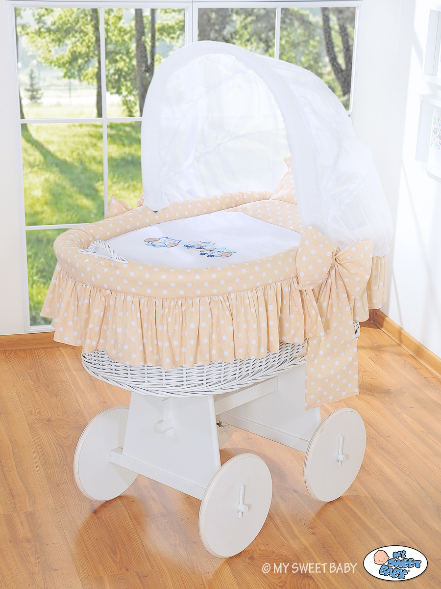 Beige Owls Hood With Crib Wicker Baby