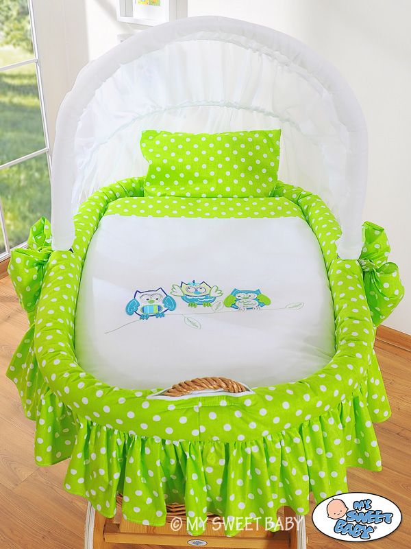 · The set includes complete bedding and drape set as shown in the picture. - The biggest bassinet on the market with total sizing of L 98 cm, W 65 cm, H 130 cm. The biggest lying space: 80x45 cm allows to use the crib longer. Suitable from birth to 9 months approx. - Manually caned basket made of healthy, natural wicker. - The chassis made of real wood, very stable! Much higher than in other producers – 50 cm high. It brings comfort as bending down for the baby is not necessary. - Big wheels made of real wood (with the diameter of 30 cm) turn lightly and quietly. Each wheel has white rubber tyres that leave no marks on the floor. - All materials, from the wood for the chassis, through the wicker for the basket, to materials and the trim stuffing are precisely inspected and finished in detail. - The handle at the front of the bassinet allows to change its position easily. - Special hood mechanism allows to place the hood in every position. The mechanism is fixed to the basket, nevertheless, its elements may be easily disassembled to be take off the trim for washing. - Each basket is lined with a thick layer of fleece trimmed with cotton. It makes the basket a soft and comfortable nest your baby may sleep in. - A cotton pillow (35x37cm) and cover (78x78cm) are filled with special anti-allergic stuffing, very light and warm. The bed – clothing is 100% cotton. All elements may be mechanically washed. - The whole is easy - to –assemble, it’s enough to follow the assembly instruction. Just two moves and it’s ready! - Anti-allergic mattress, with a cover that may be taken off.