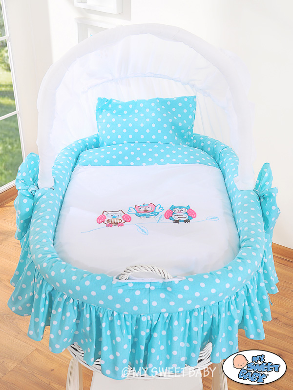 · The set includes complete bedding and drape set as shown in the picture. · The biggest bassinet on the market with total sizing of L 98 cm, W 65 cm, H 130 cm. The biggest lying space: 80x45 cm allows to use the crib longer. Suitable from birth to 9 months approx. · Manually caned basket made of healthy, natural wicker. · The chassis made of real wood, very stable! Much higher than in other producers – 50 cm high. It brings comfort as bending down for the baby is not necessary. · Big wheels made of real wood (with the diameter of 30 cm) turn lightly and quietly. Each wheel has white rubber tyres that leave no marks on the floor. · All materials, from the wood for the chassis, through the wicker for the basket, to materials and the trim stuffing are precisely inspected and finished in detail. · The handle at the front of the bassinet allows to change its position easily. · Special hood mechanism allows to place the hood in every position. The mechanism is fixed to the basket, nevertheless, its elements may be easily disassembled to be take off the trim for washing. · Each basket is lined with a thick layer of fleece trimmed with cotton. It makes the basket a soft and comfortable nest your baby may sleep in. · A cotton pillow (35x37cm) and cover (78x78cm) are filled with special anti-allergic stuffing, very light and warm. The bed – clothing is 100% cotton. All elements may be mechanically washed. · The whole is easy - to –assemble, it’s enough to follow the assembly instruction. Just two moves and it’s ready! · Anti-allergic mattress, with a cover that may be taken off.
