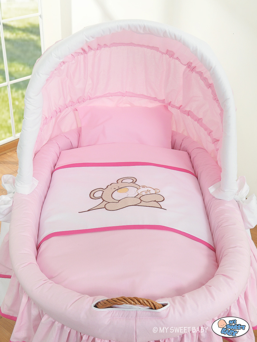 Baby Wicker Crib with Hood - Teddy Bear Barnaba pink