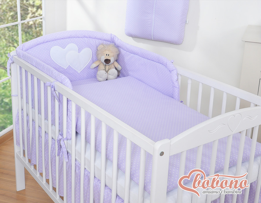 Baby Shop » Bedding sets for cots and beds » Collection HEARTS » Bedding sets for cot 120cm » Universal Bumper » Babycot Universal bumper- Hanging Hearts white polka dots on lilac