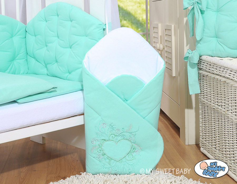 Babynest- Chic mint Very functional, warm and comfortable babynest for breastfeeding and falling asleep. He offers the child comfort. Gives the adult a feeling of trust. Babynest with embroidery- Collection Chic