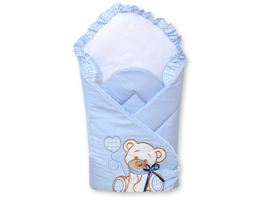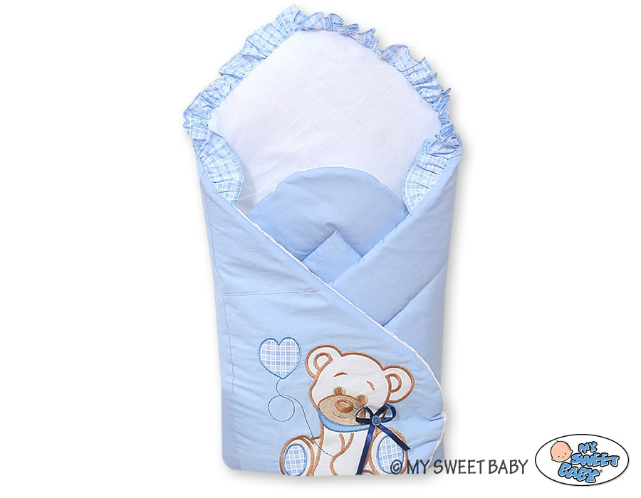 Baby Shop » Bedding sets for cots and beds » Collection TEDDY BEAR WITH BOW » Babynest with stiffening » Babynest Newborn Wrap Blanket with stiffening- Bear with bow blue