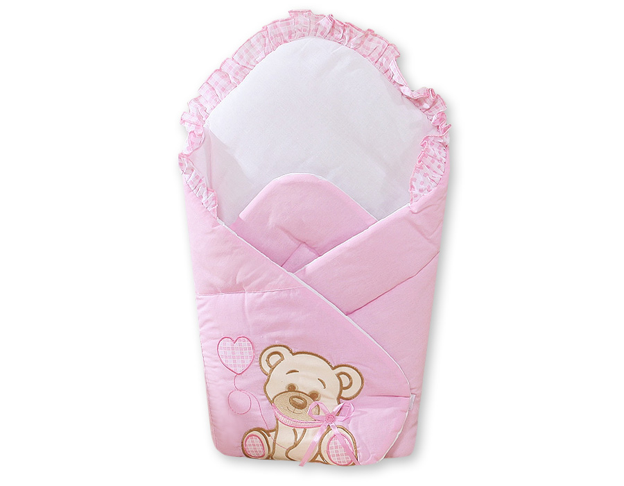 Babynest Newborn Wrap Blanket with stiffening- Bear with bow pink