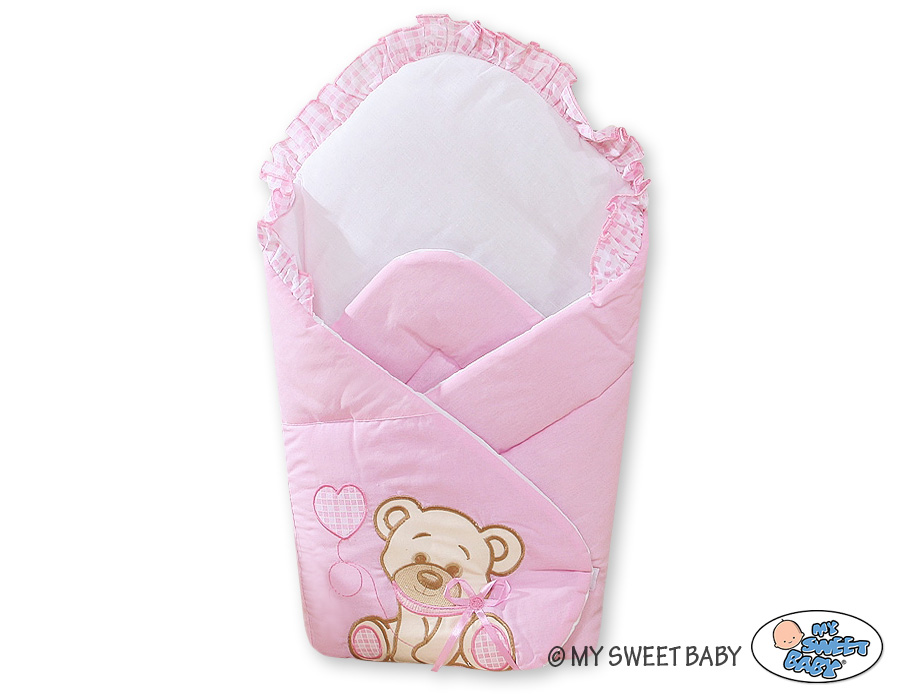 Baby Shop » Bedding sets for cots and beds » Collection TEDDY BEAR WITH BOW » Babynest with stiffening » Babynest Newborn Wrap Blanket with stiffening- Bear with bow pink