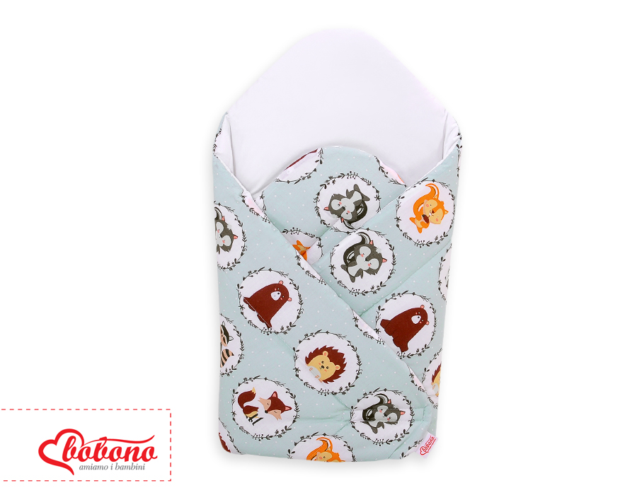 Babynest Newborn Wrap Blanket with stiffening - mint animals