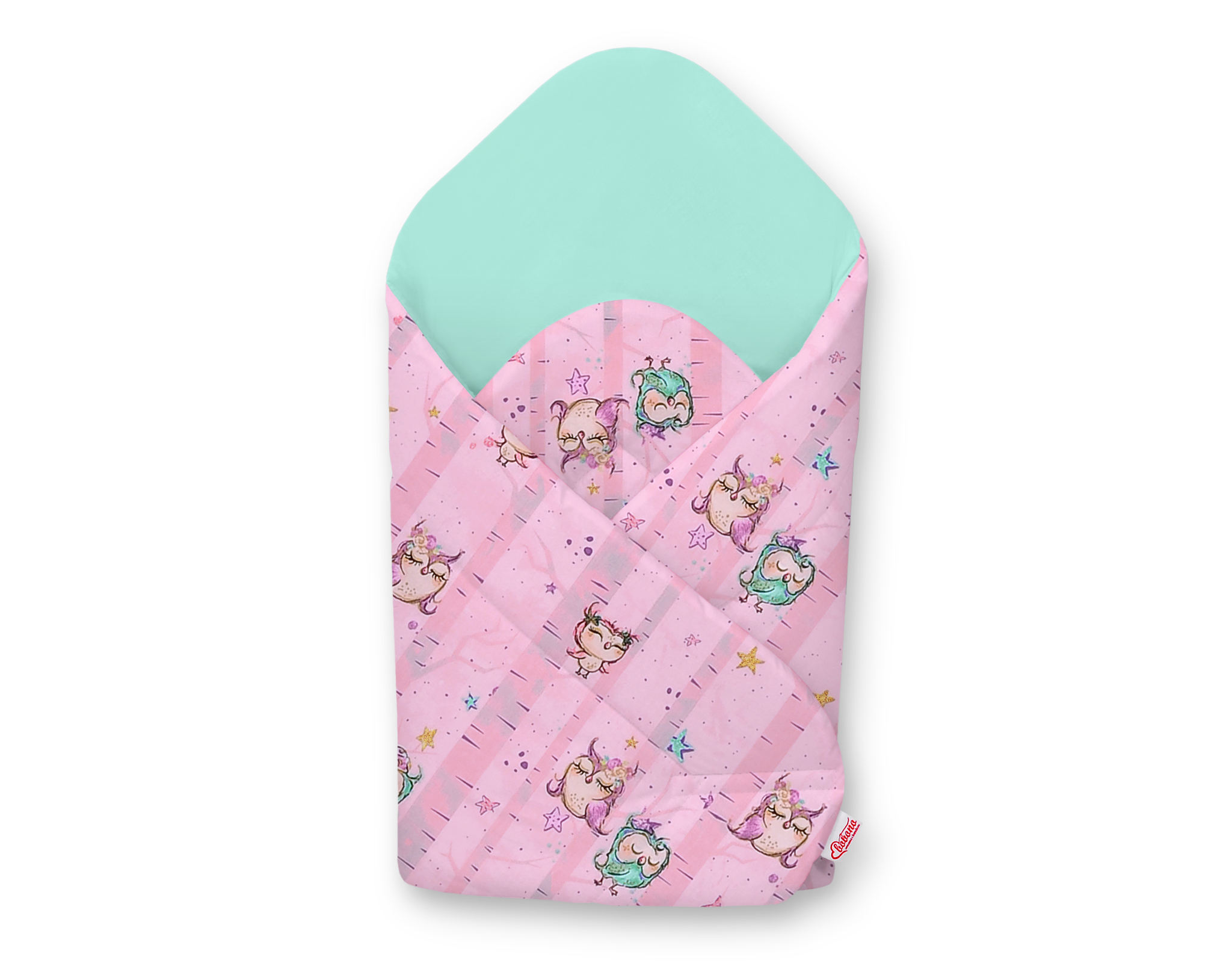Babynest Newborn Wrap Blanket with stiffening - Owls pink-mint/mint