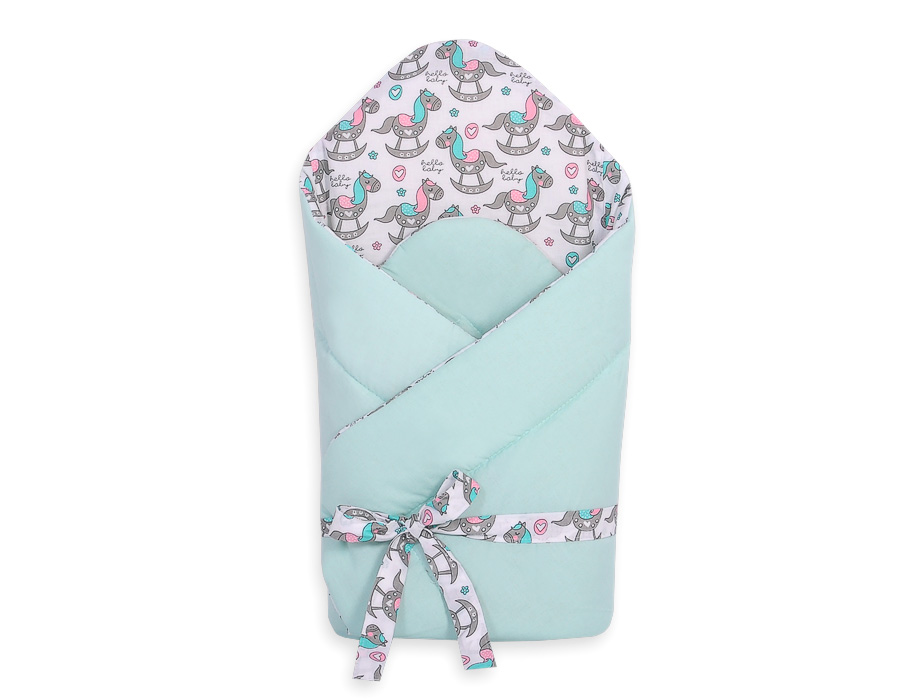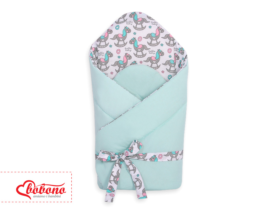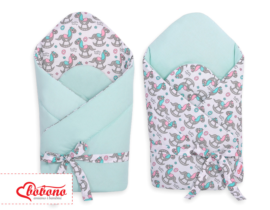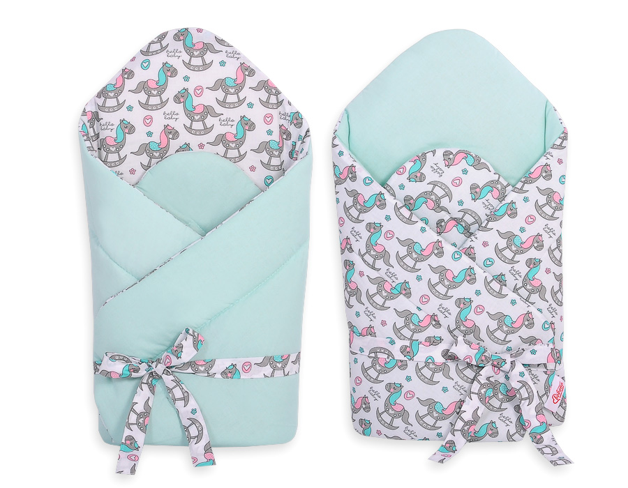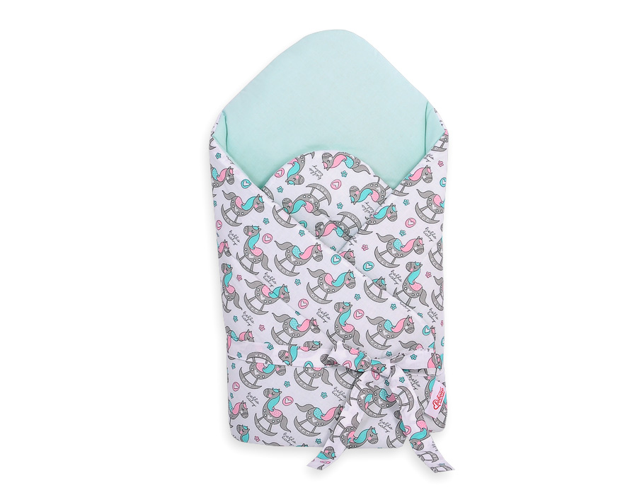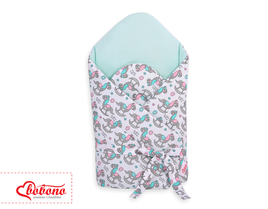 Babynest Newborn Wrap Blanket with stiffening with bow - rocking horses