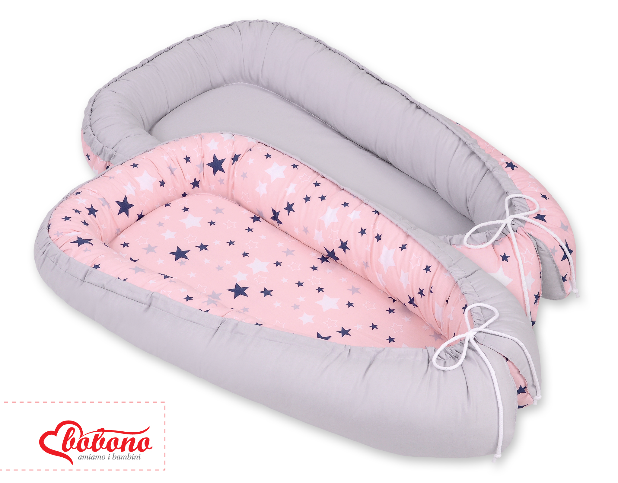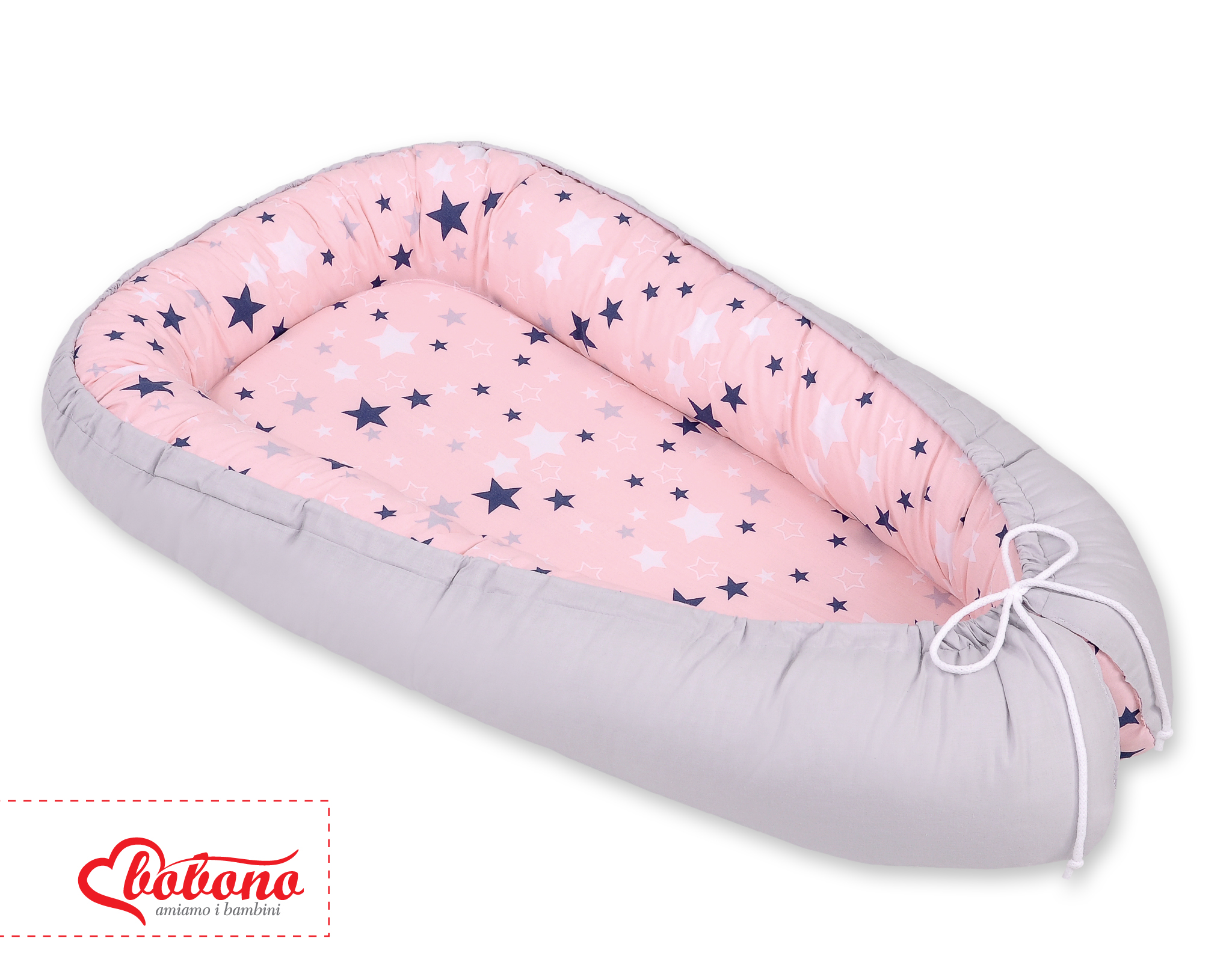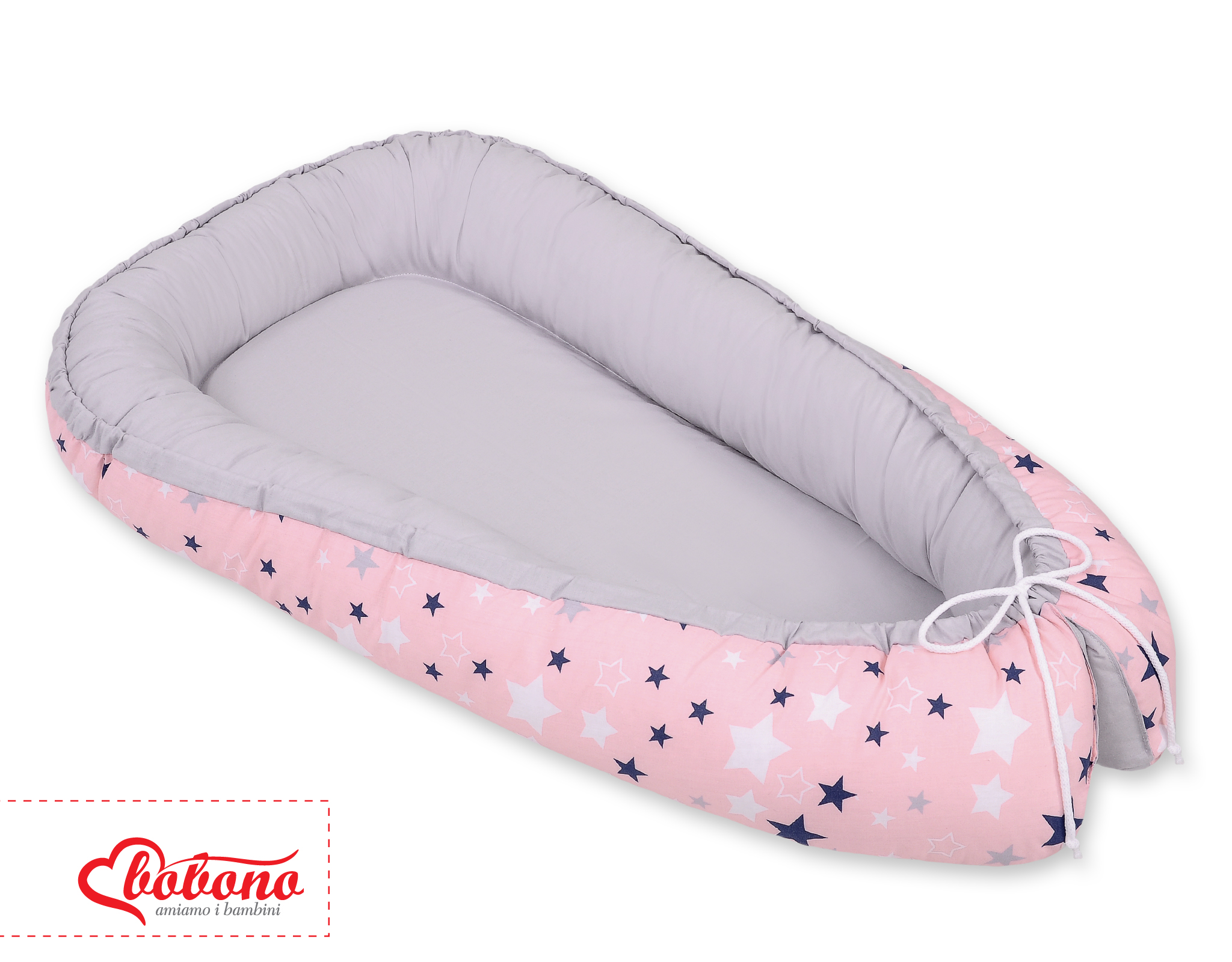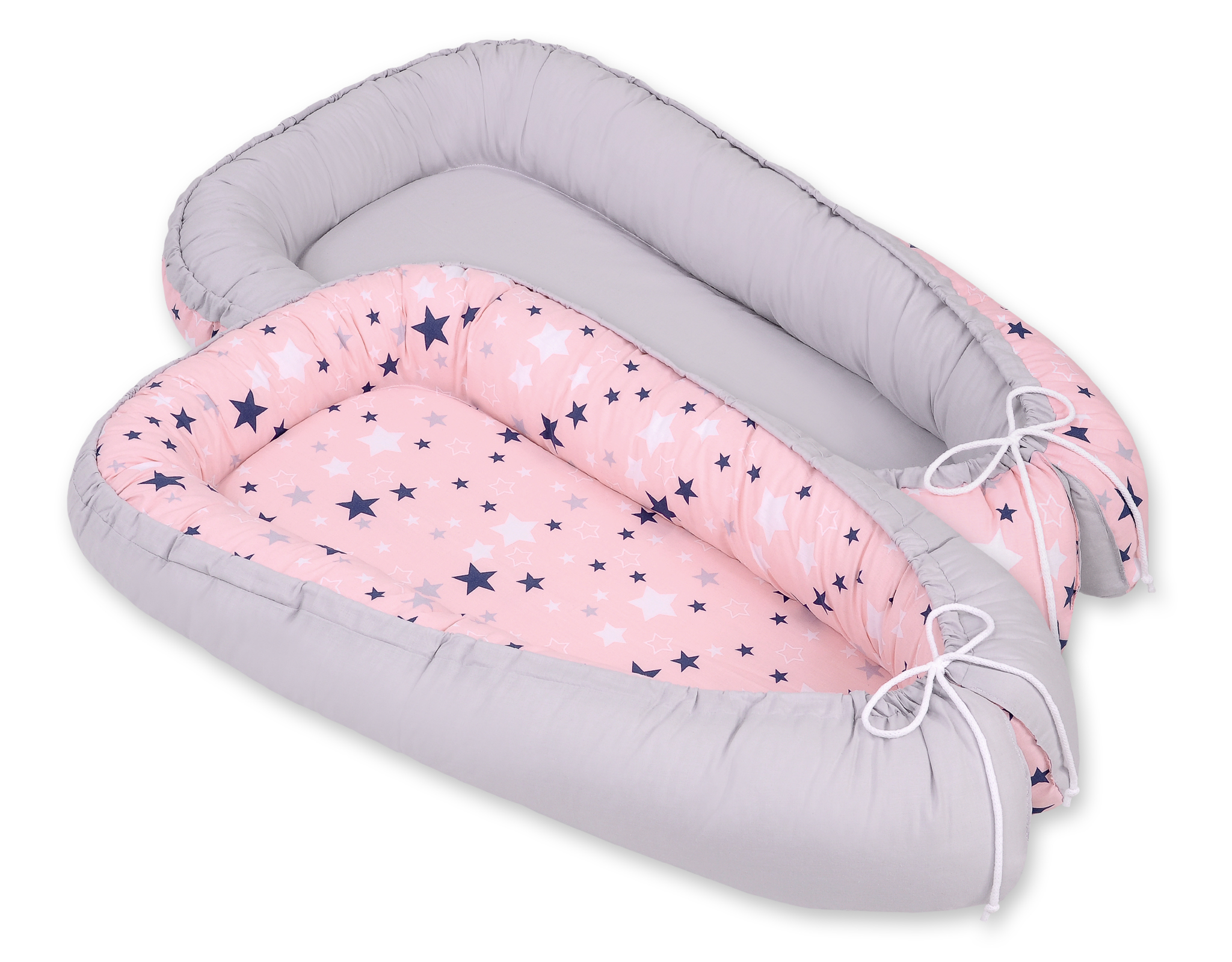 Baby Shop » Bedding sets for cots and beds » Collection FUN & JOY » Baby nest » Babynest- pink-navy blue stars/gray