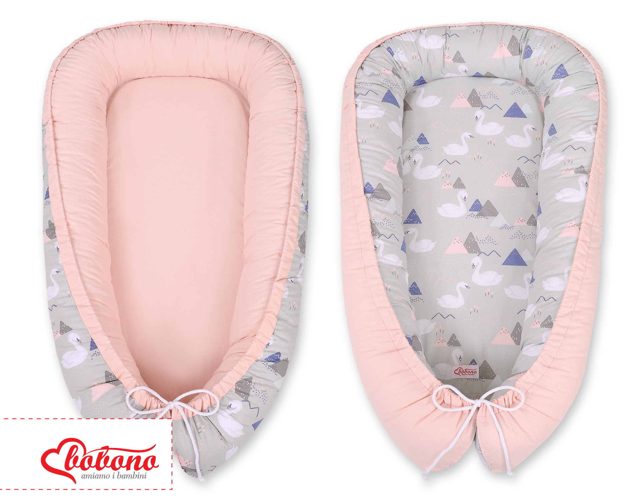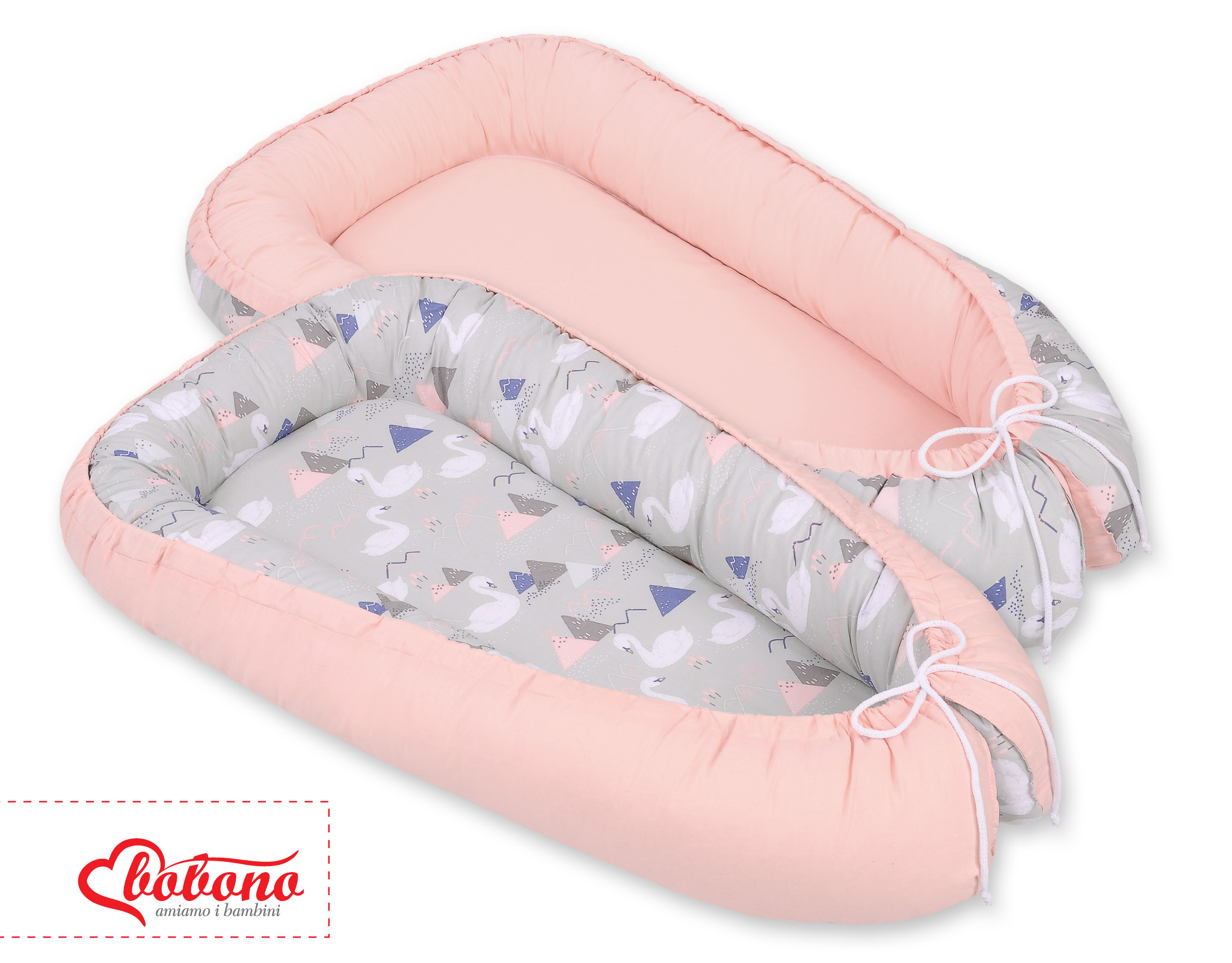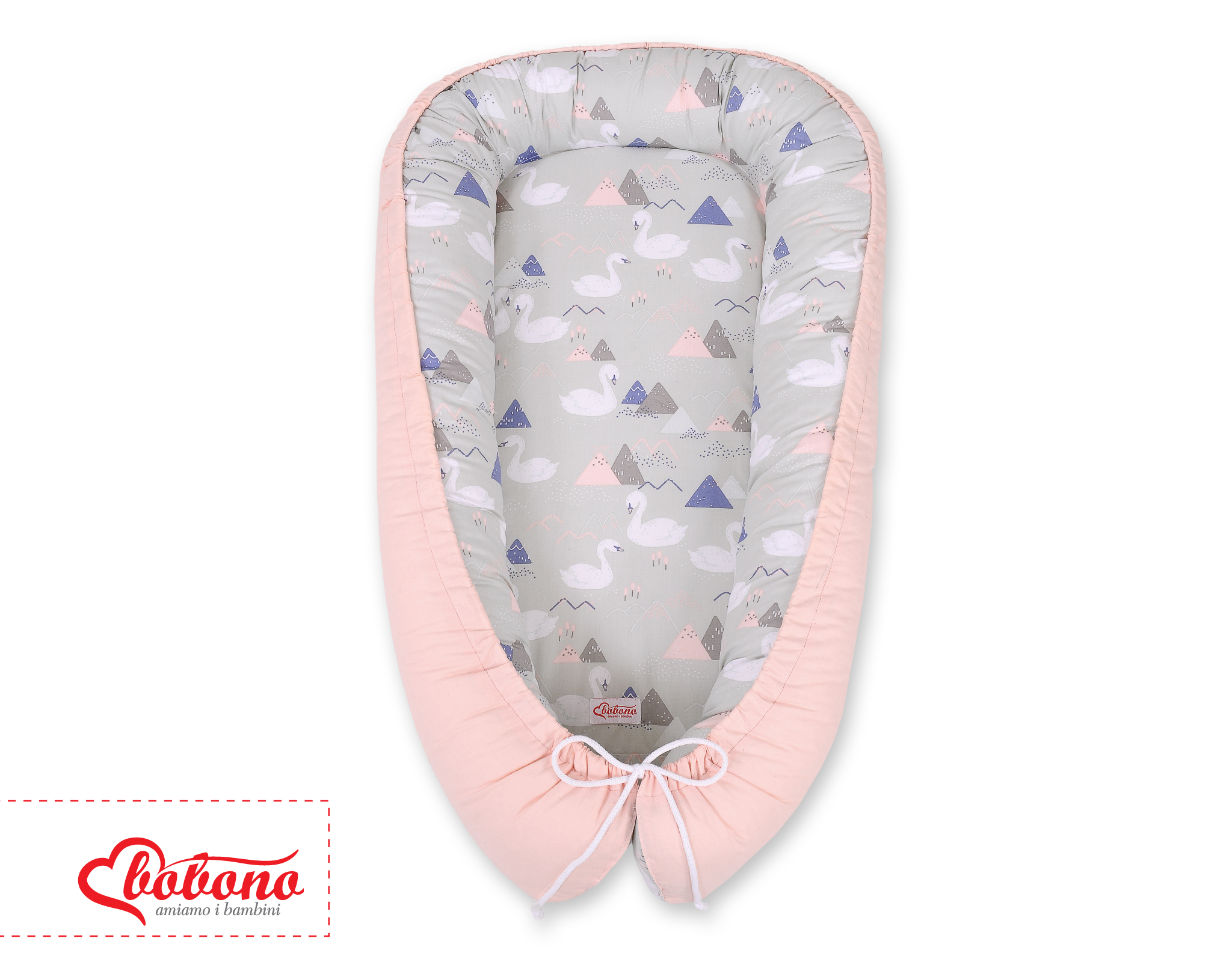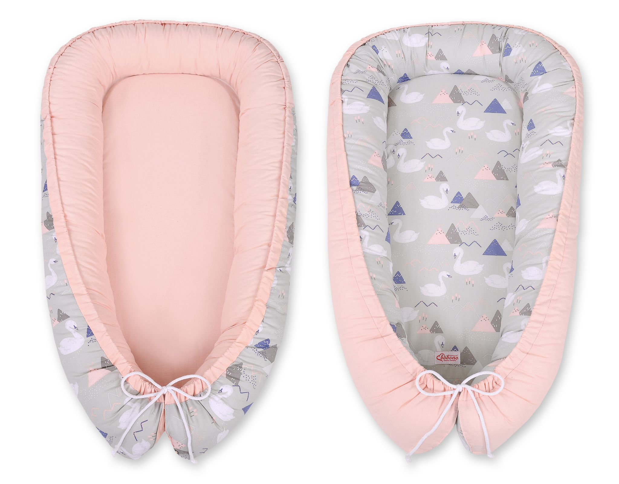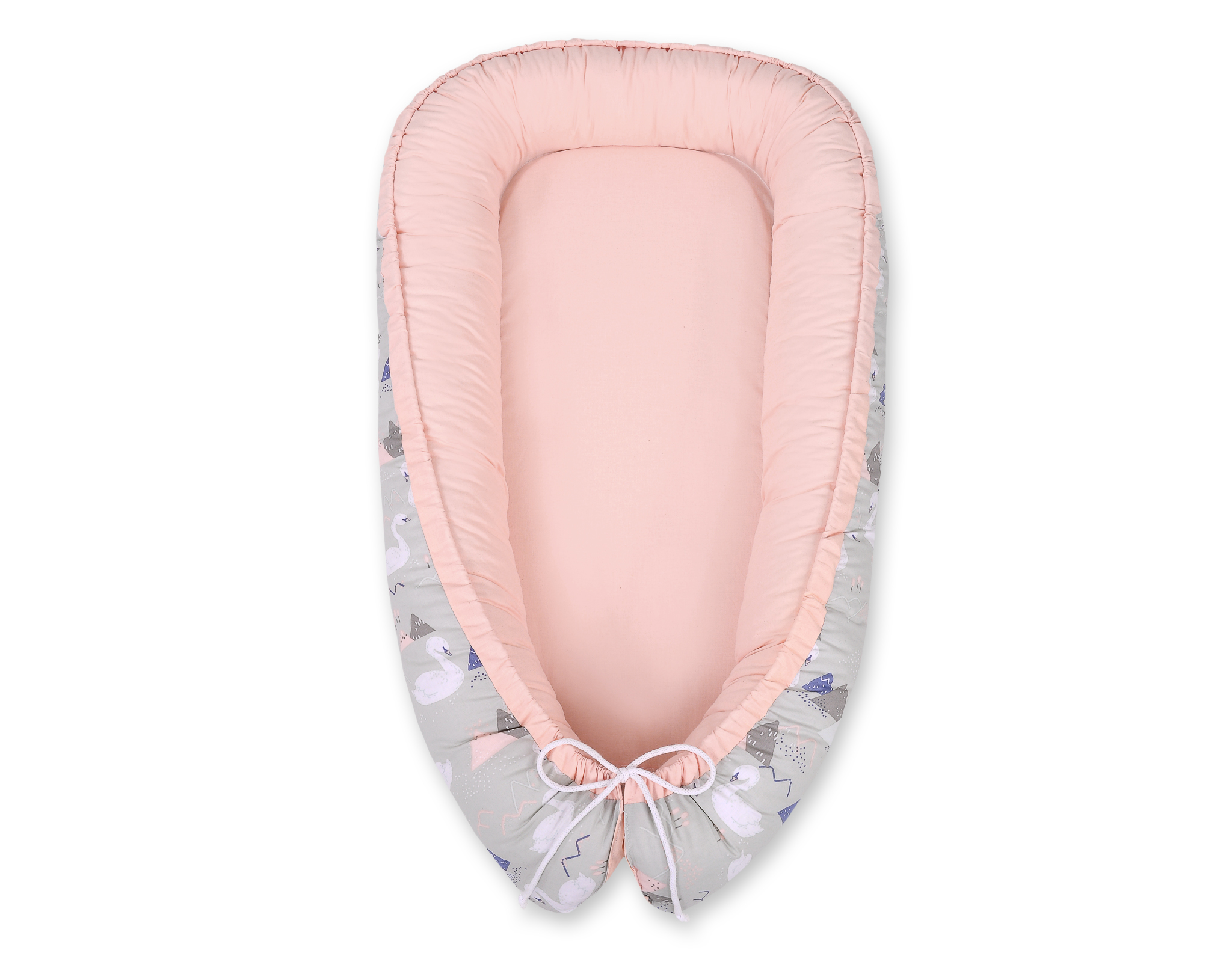 Baby Shop » Bedding sets for cots and beds » Collection FUN & JOY » Baby nest » Babynest- Swans gray/powder pink