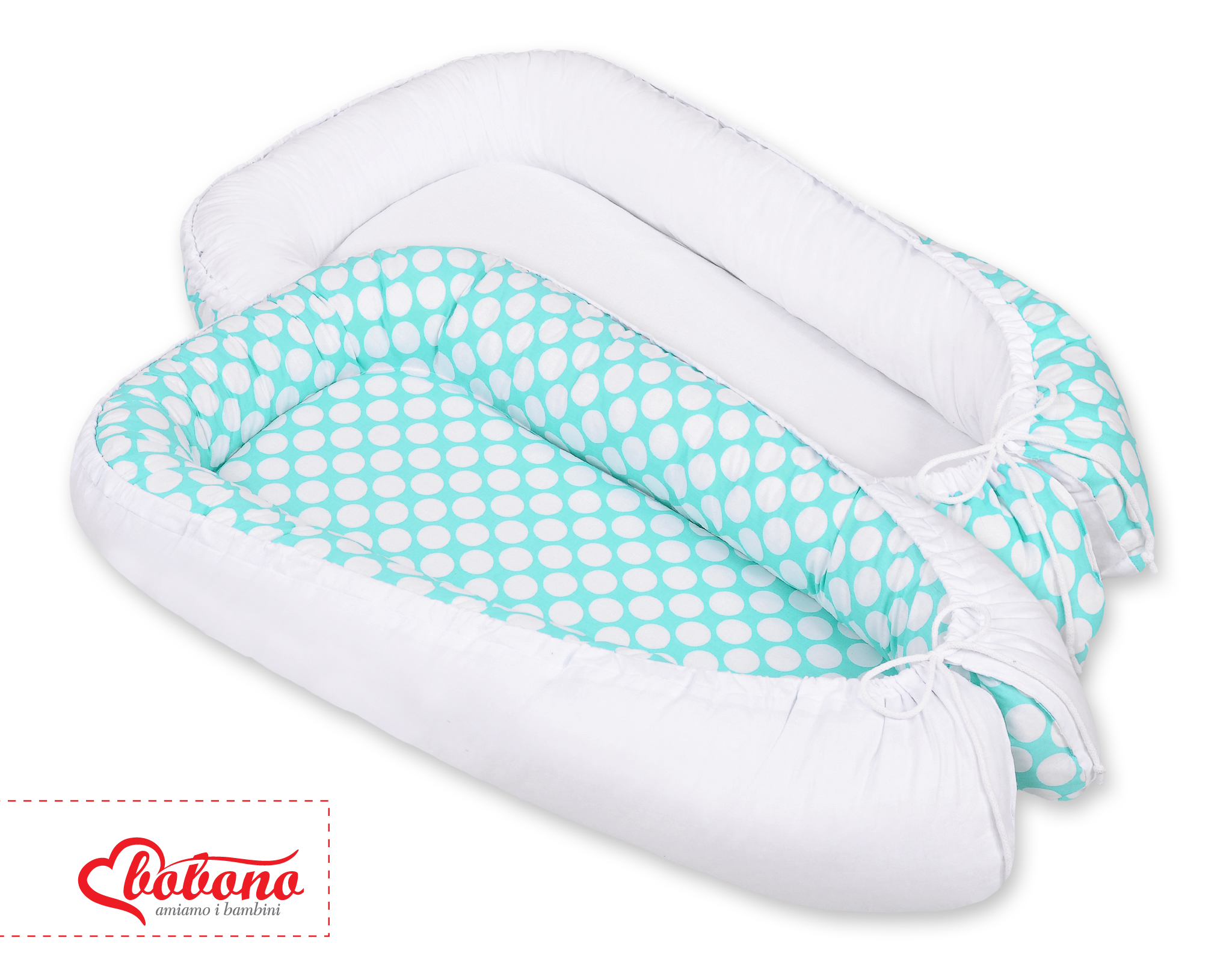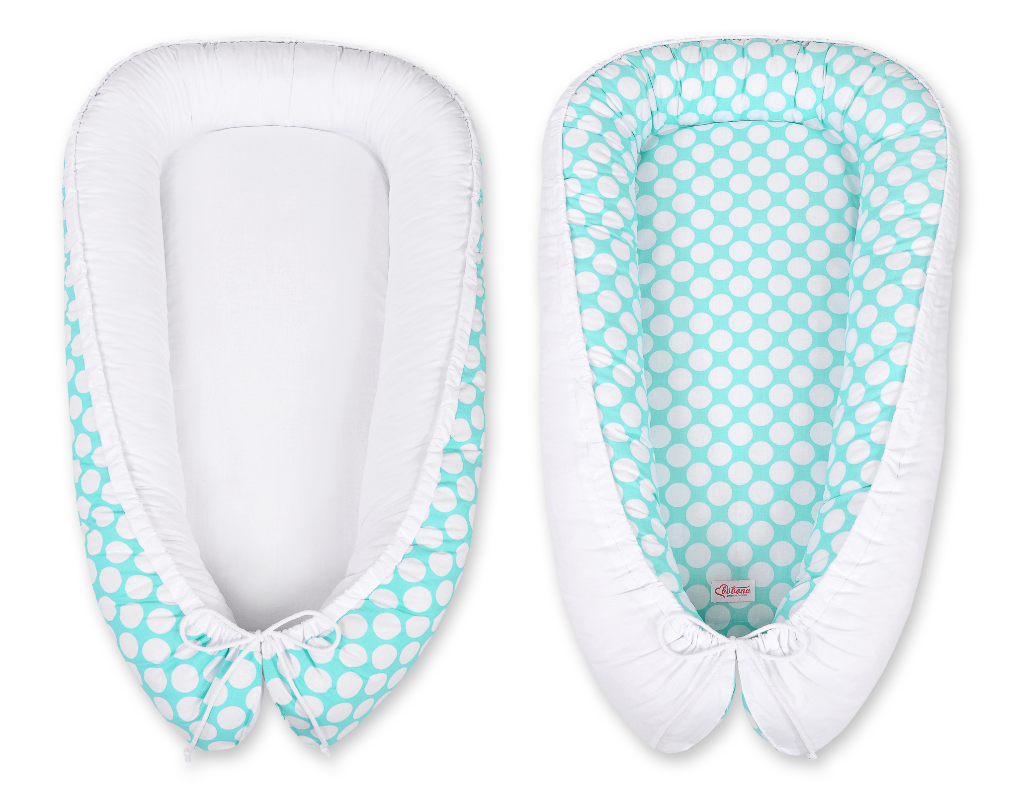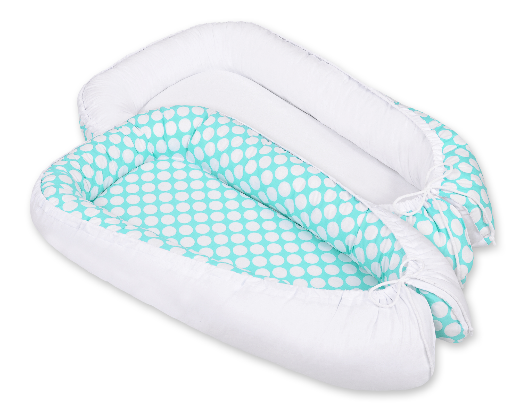 Baby Shop » Bedding sets for cots and beds » Collection FUN & JOY » Baby nest » Babynest- turquoise with white dots/white