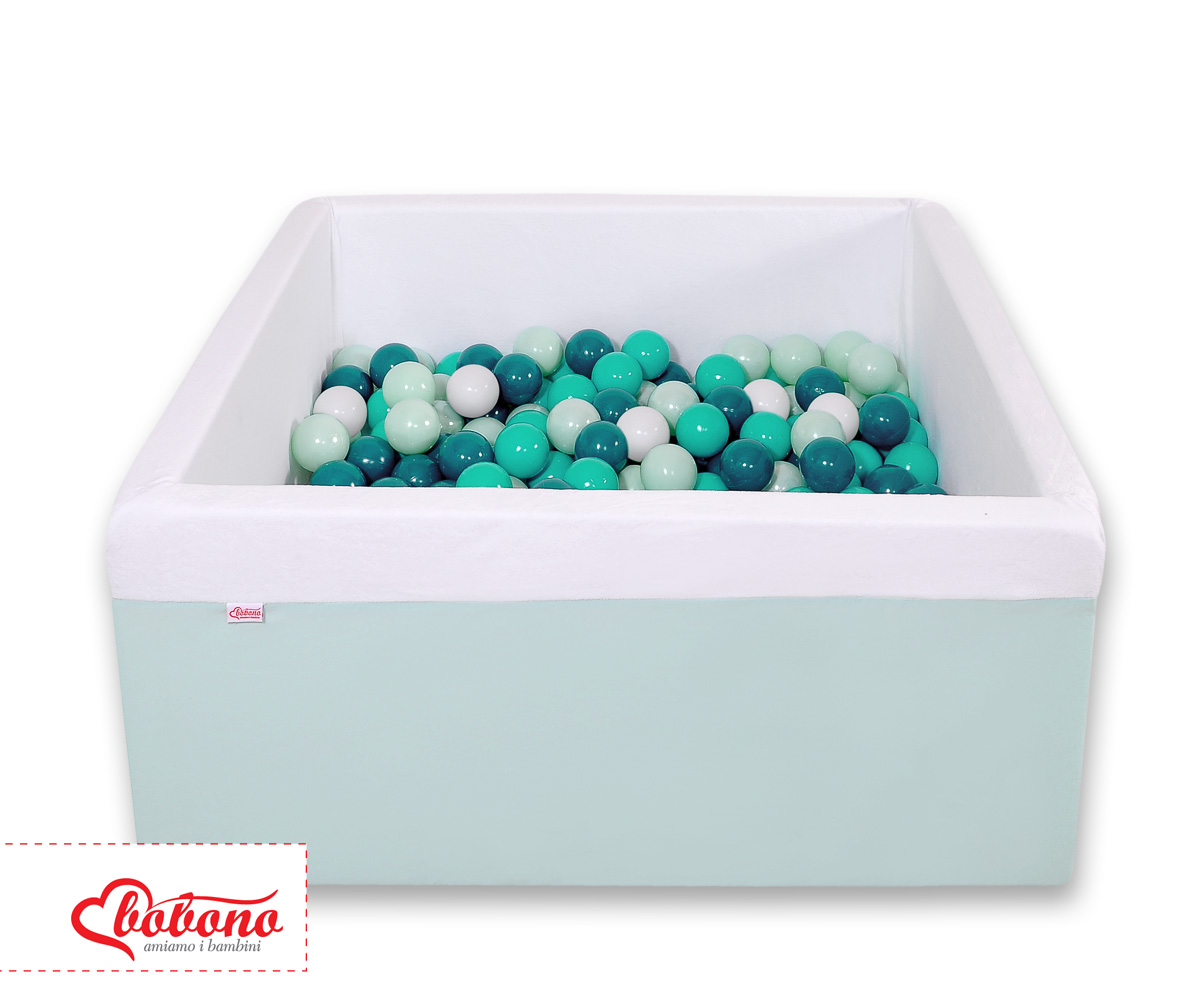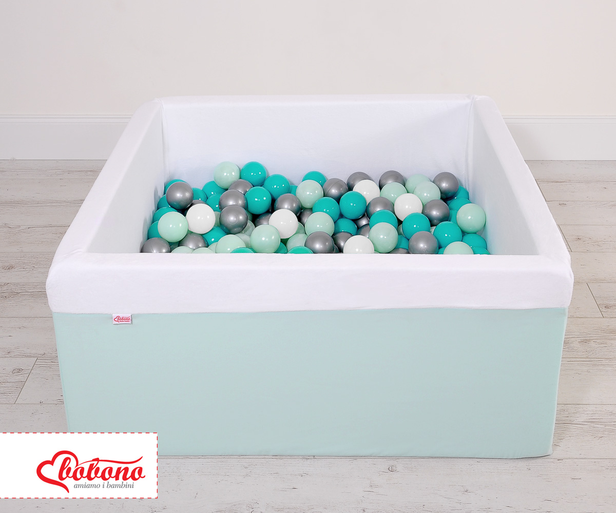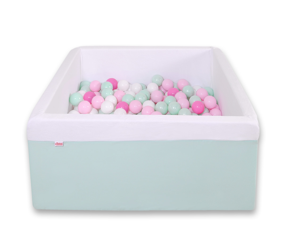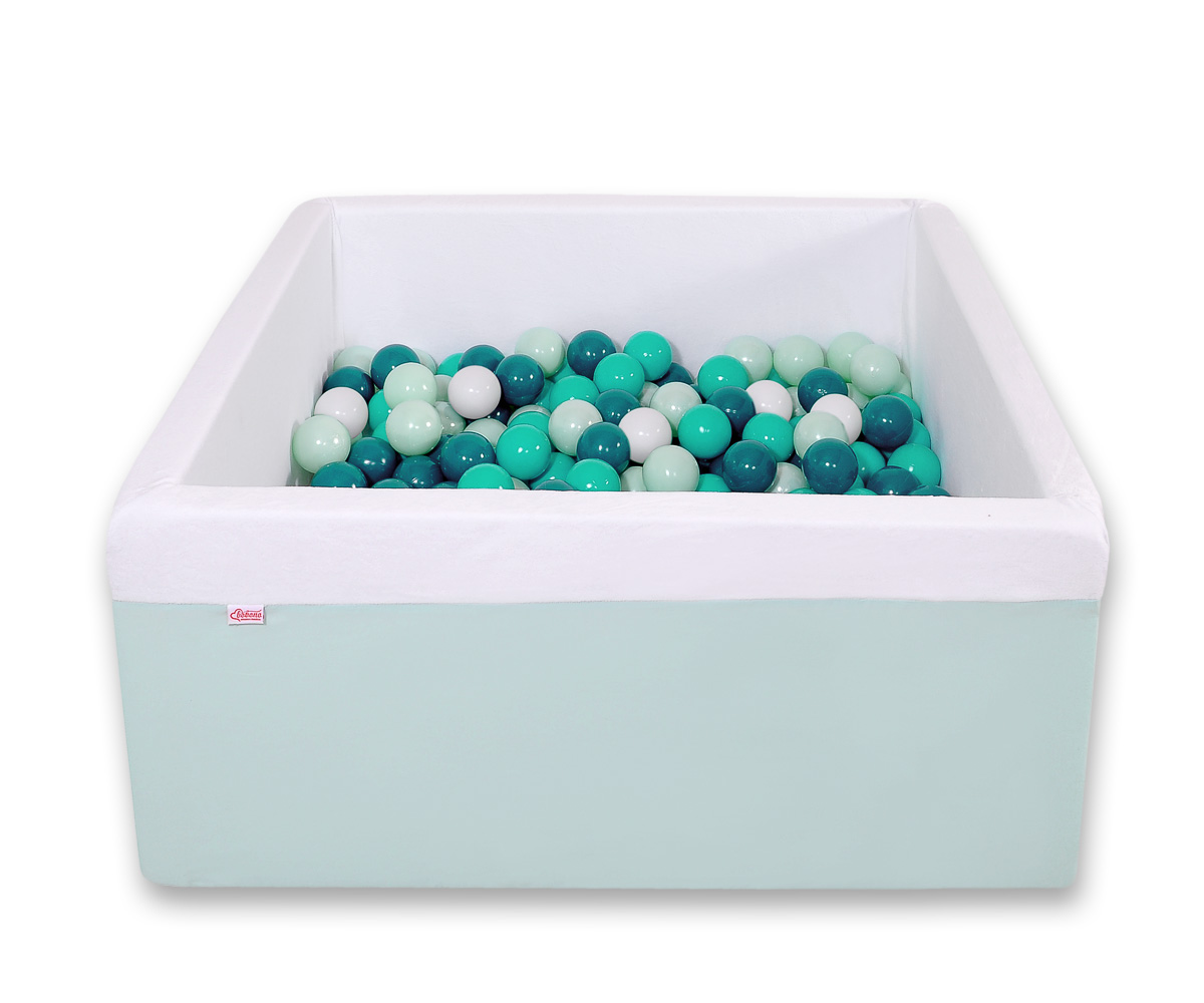 Ball-pit minky with balls 200pcs - mint Ball pit suitable for playing both at home and in the open air. It is ideal not only for fun but it provides comfort, stimulation and helps develop hand eye coordination and it is positive for the child's development.