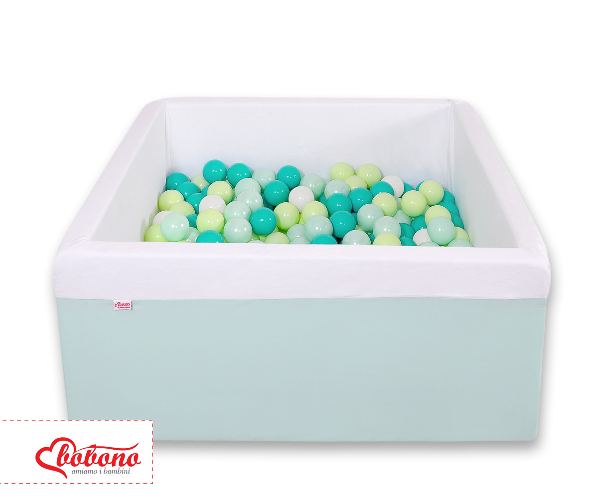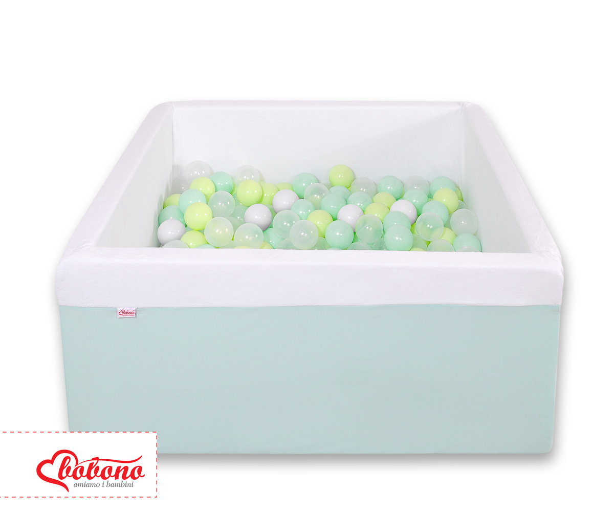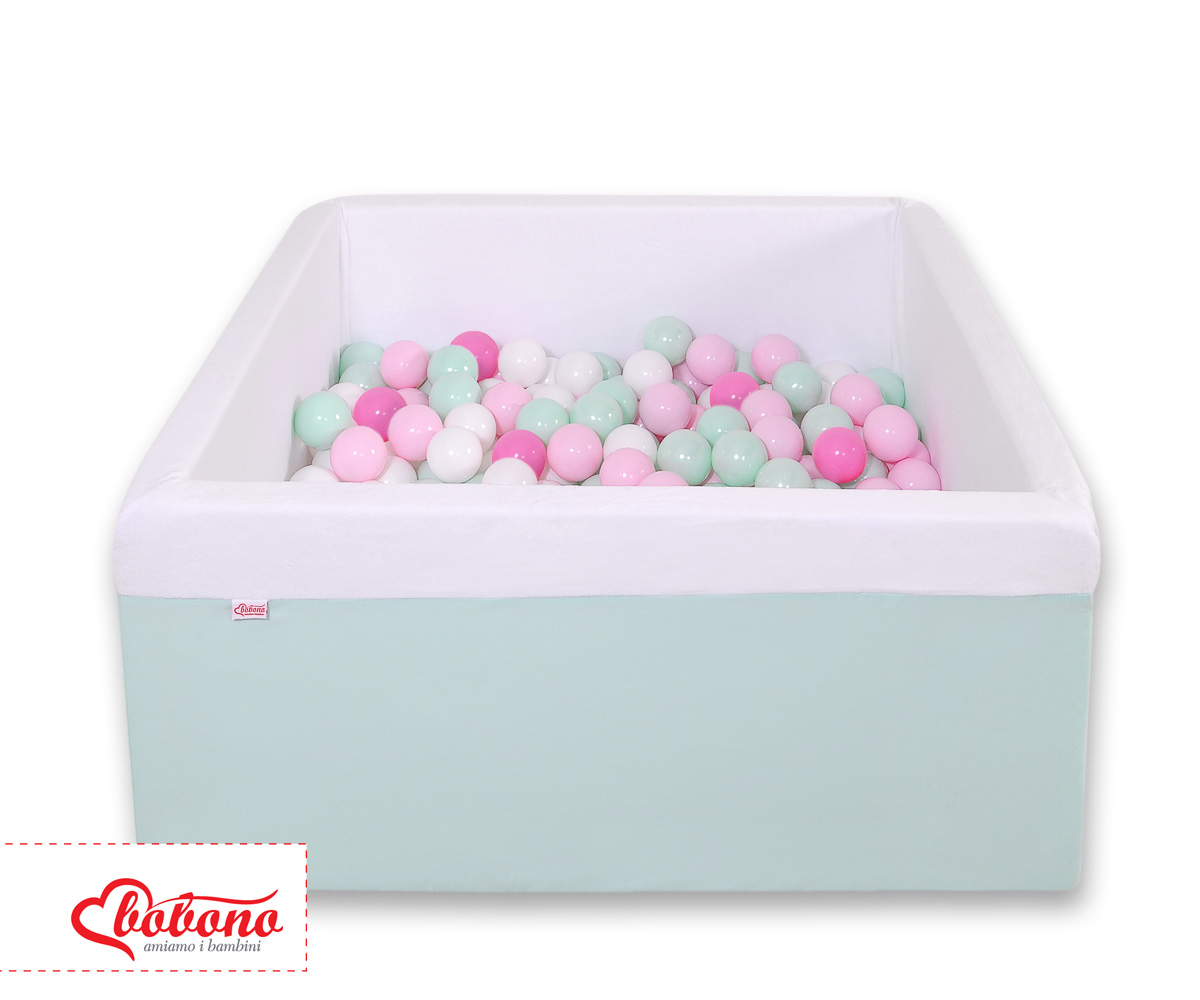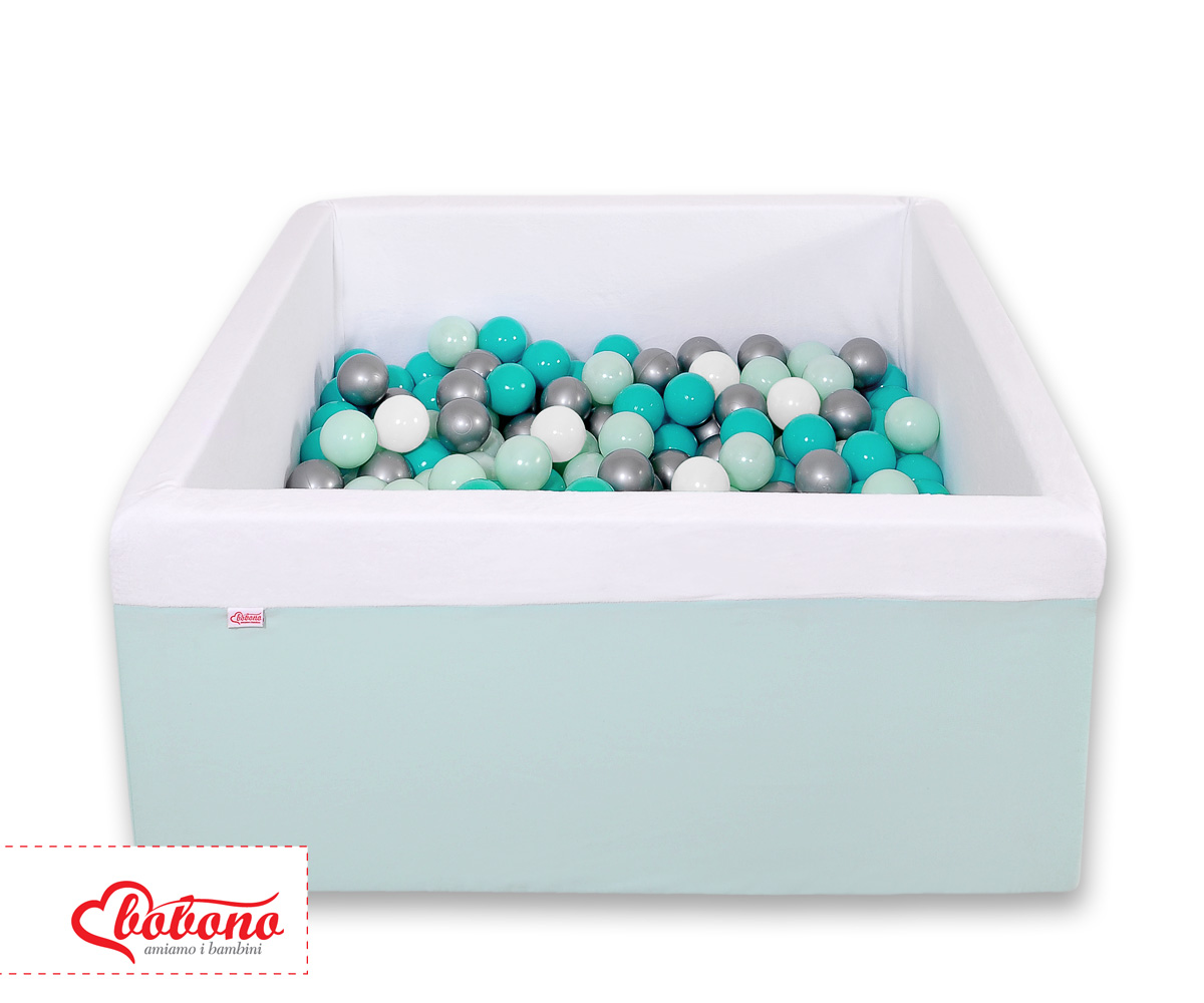 Ball-pit minky with balls 200pcs - mint Ball pit suitable for playing both at home and in the open air. It is ideal not only for fun but it provides comfort, stimulation and helps develop hand eye coordination and it is positive for the child's development.