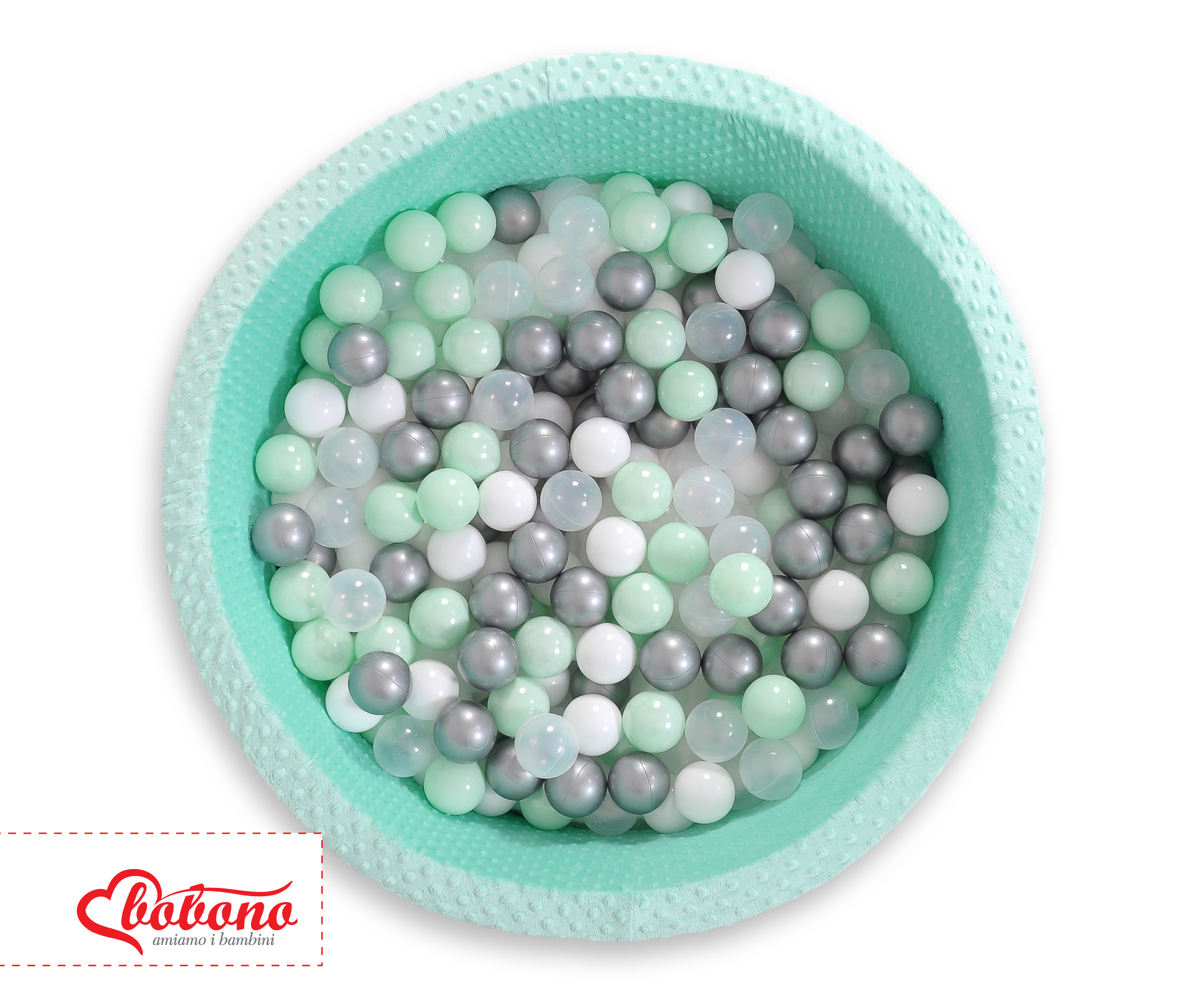 Ball-pit minky with balls 200pcs- mint Ball pit with colorful balls. It is suitable for playing both at home and in the open air.
