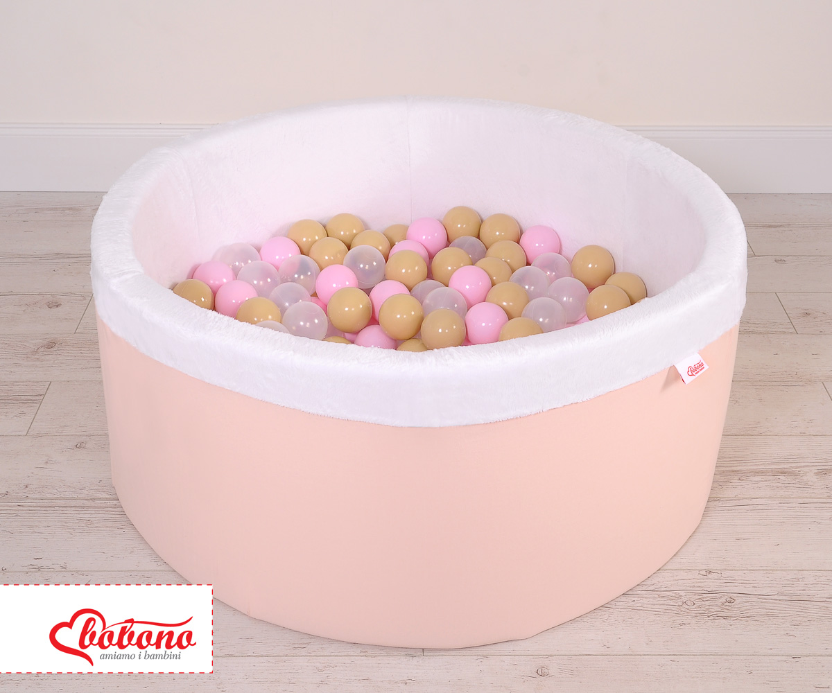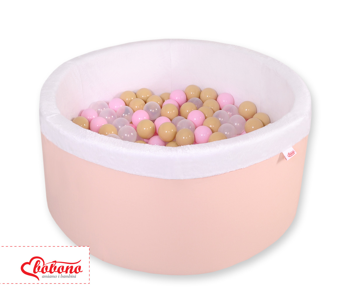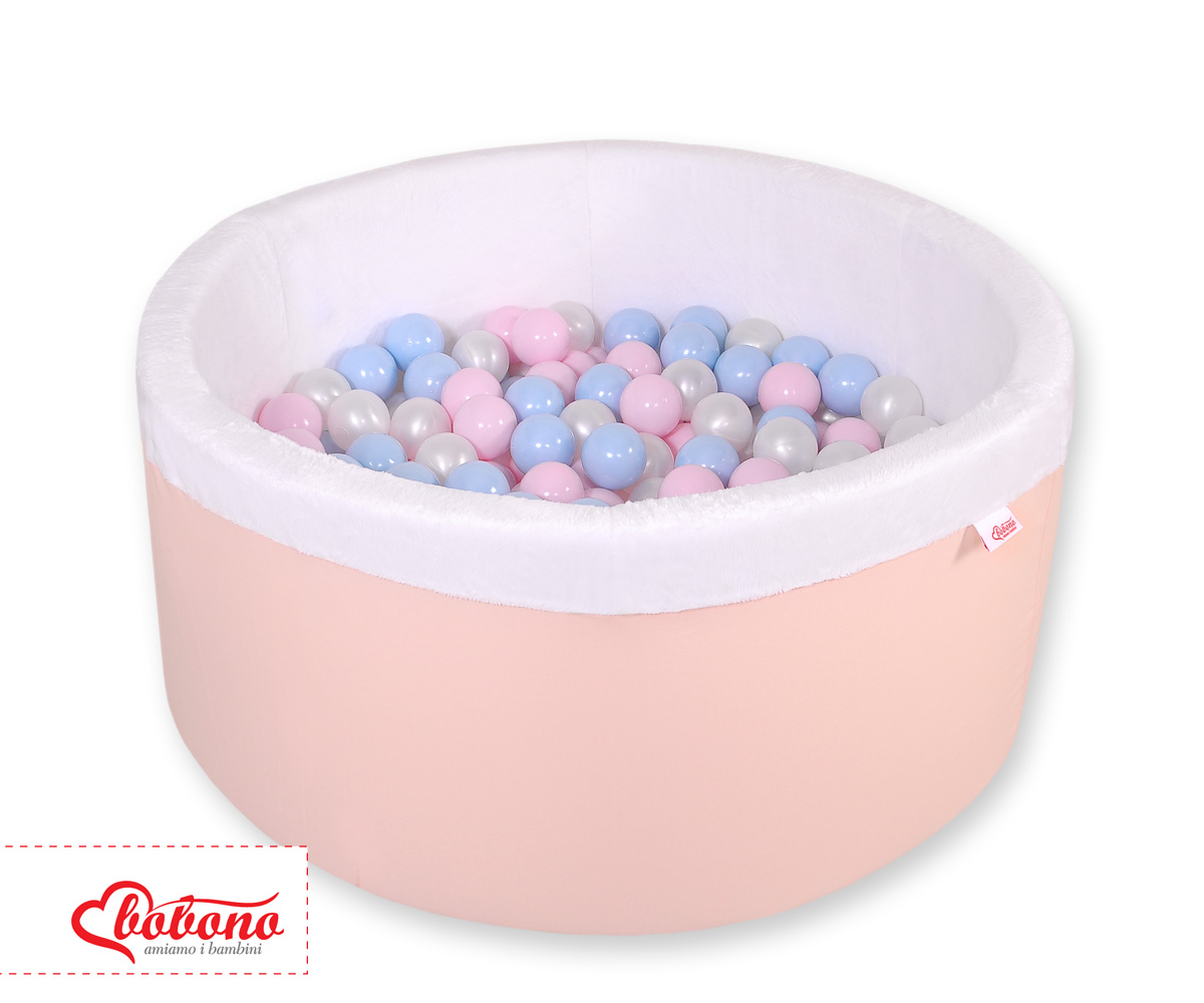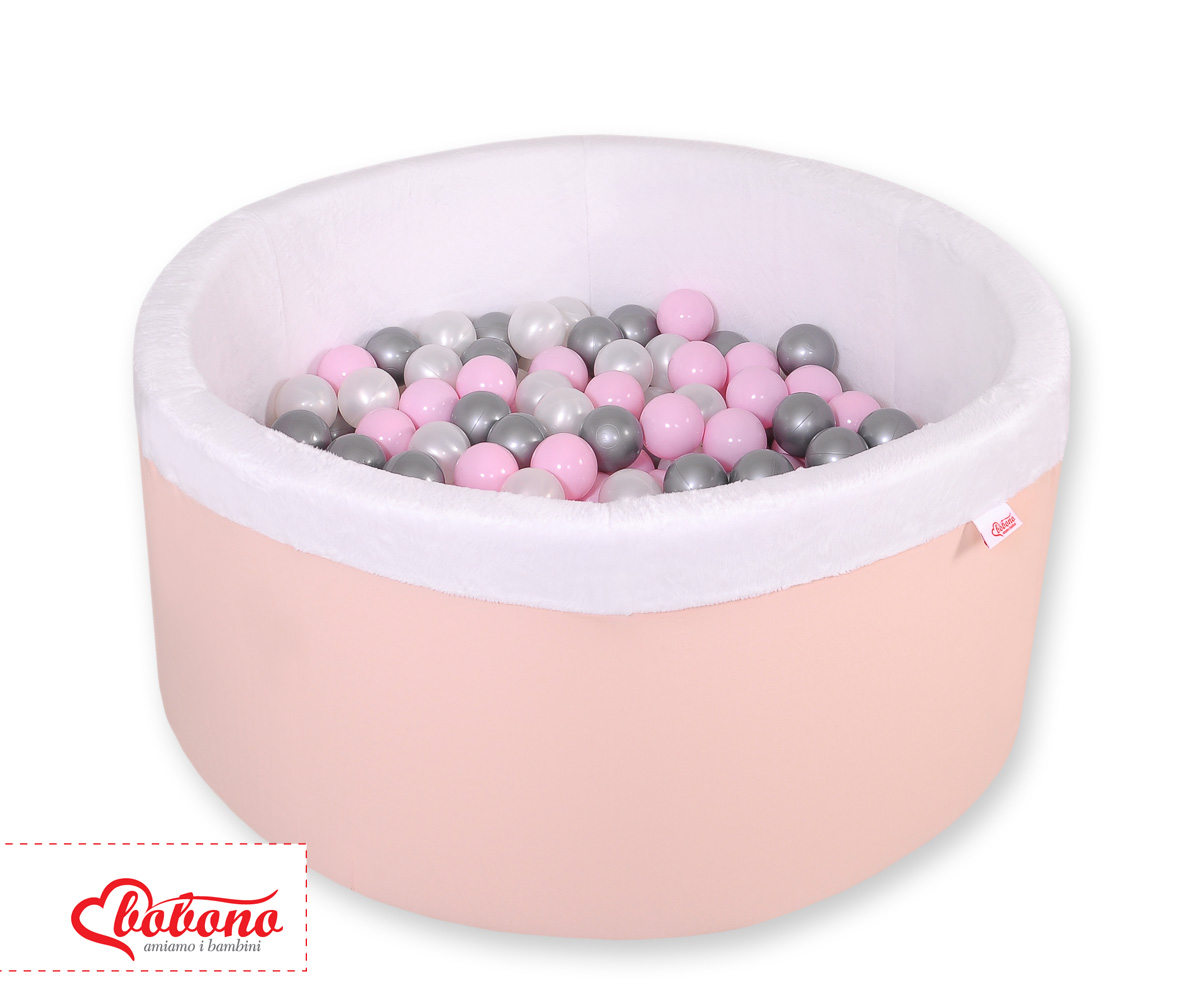Ball-pit minky with balls 200pcs - powder pink Ball pit with colorful balls. It is suitable for playing both at home and in the open air. It is ideal not only for fun but it provides comfort, stimulation and helps develop hand eye coordination and it is positive for the child's development.