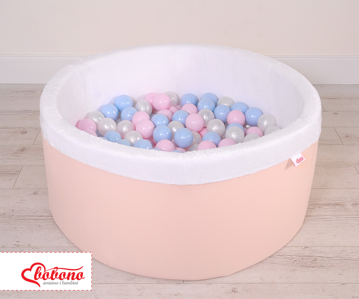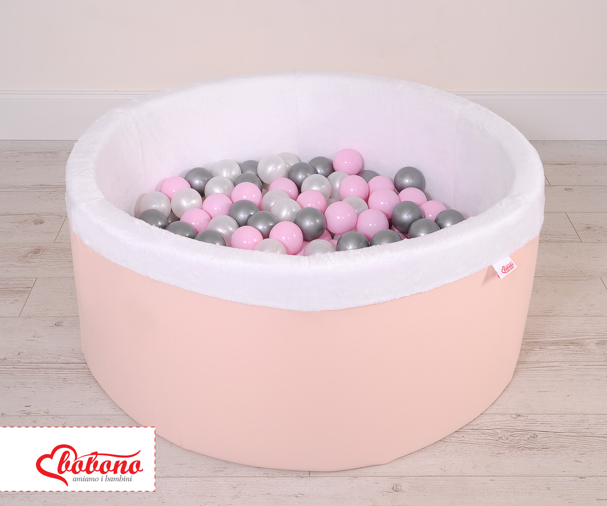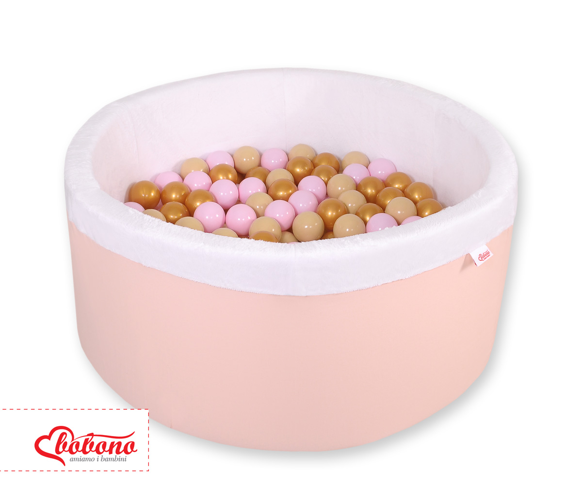 Ball-pit minky with balls 200pcs - powder pink Ball pit with colorful balls. It is suitable for playing both at home and in the open air. It is ideal not only for fun but it provides comfort, stimulation and helps develop hand eye coordination and it is positive for the child's development.