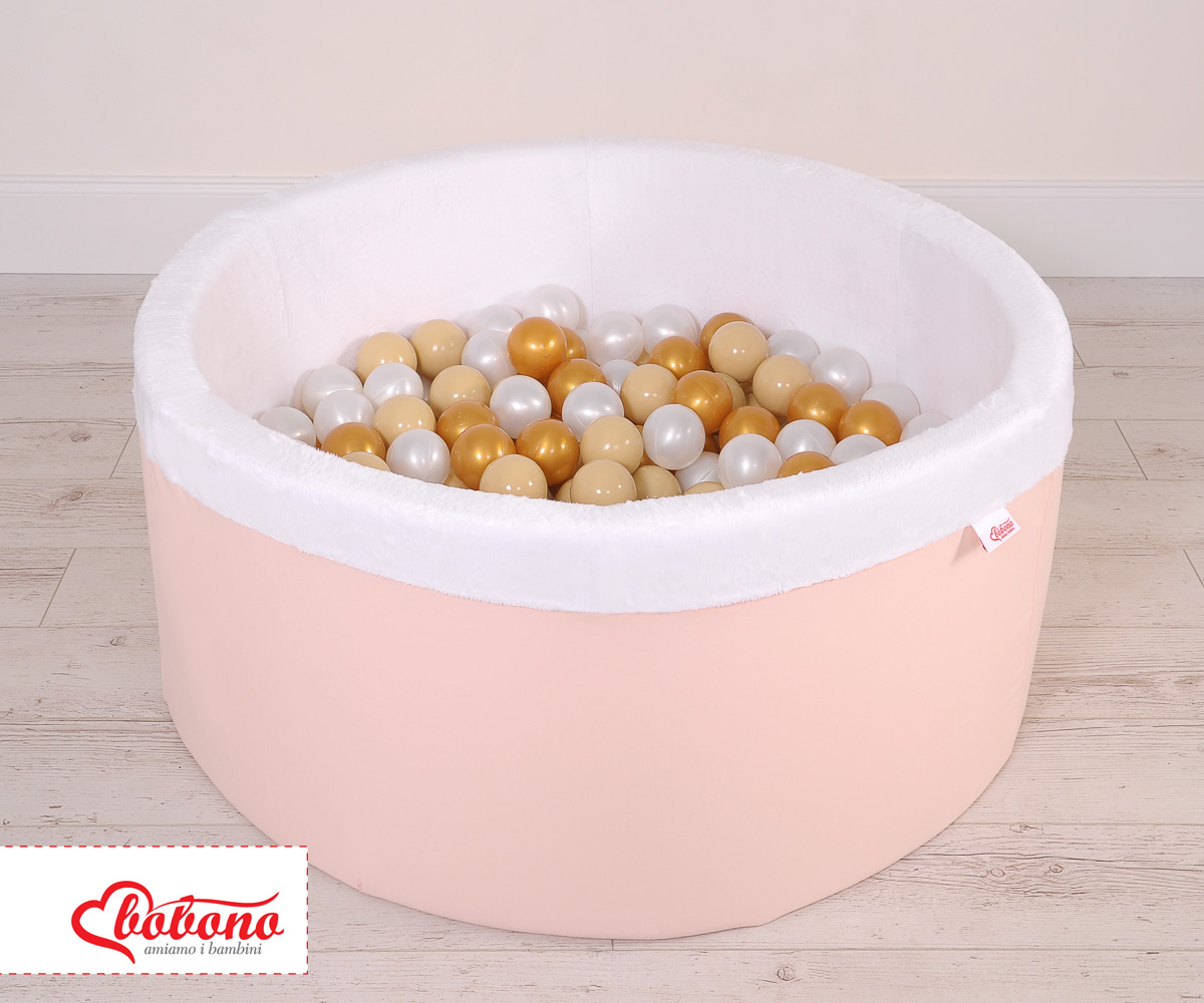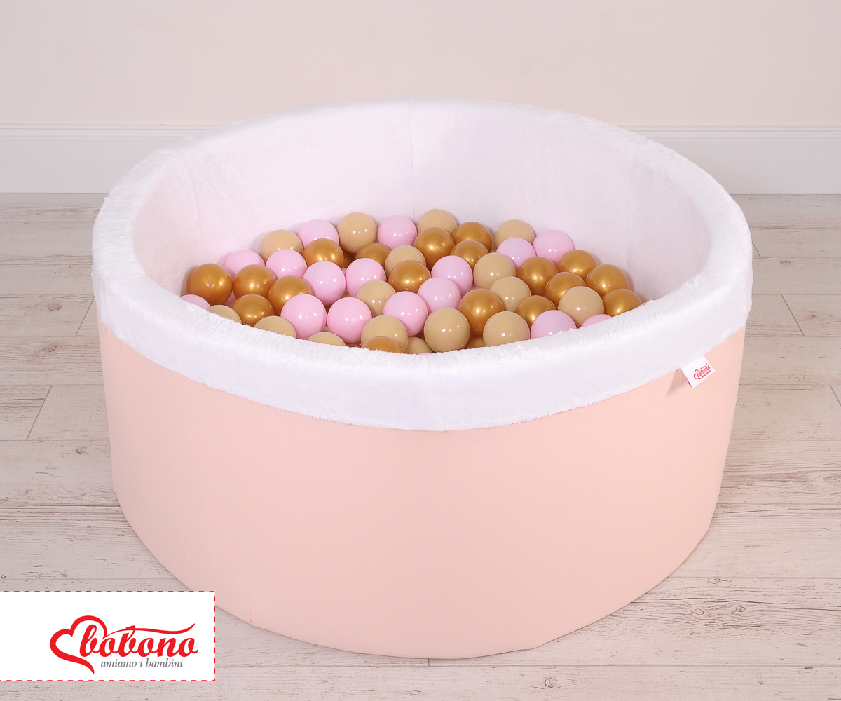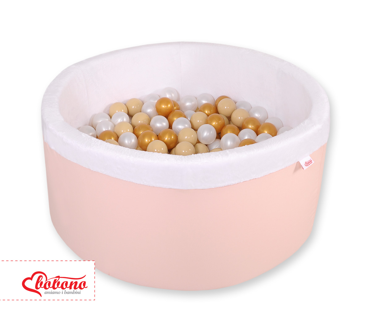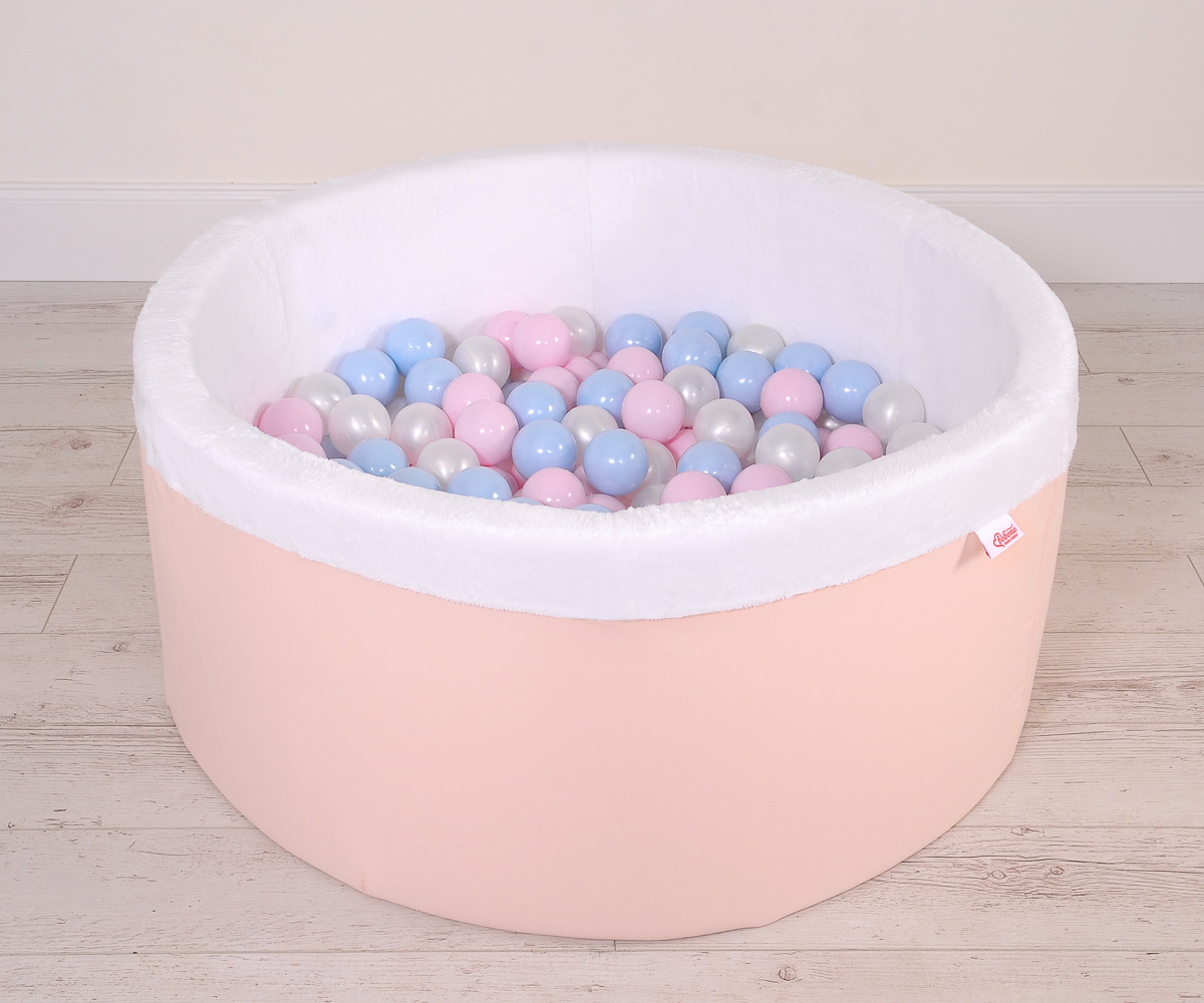 Ball-pit minky with balls 200pcs - powder pink Ball pit with colorful balls. It is suitable for playing both at home and in the open air. It is ideal not only for fun but it provides comfort, stimulation and helps develop hand eye coordination and it is positive for the child's development.