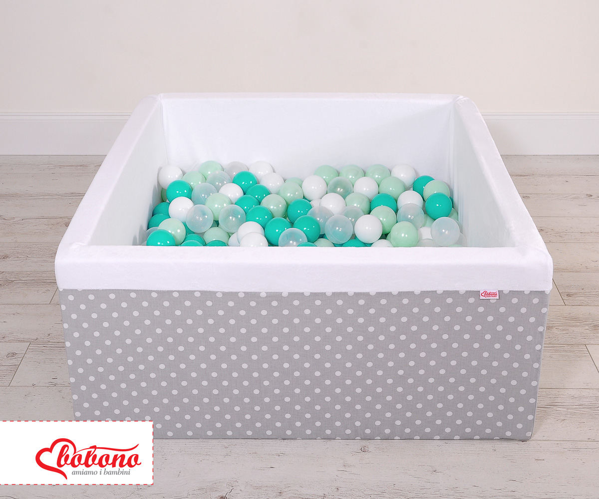 Baby Shop » Baby Toys » Ball-pits » Ball-pits with balls (own color mix) » Ball-pit minky with balls 200pcs - white dots on Gray