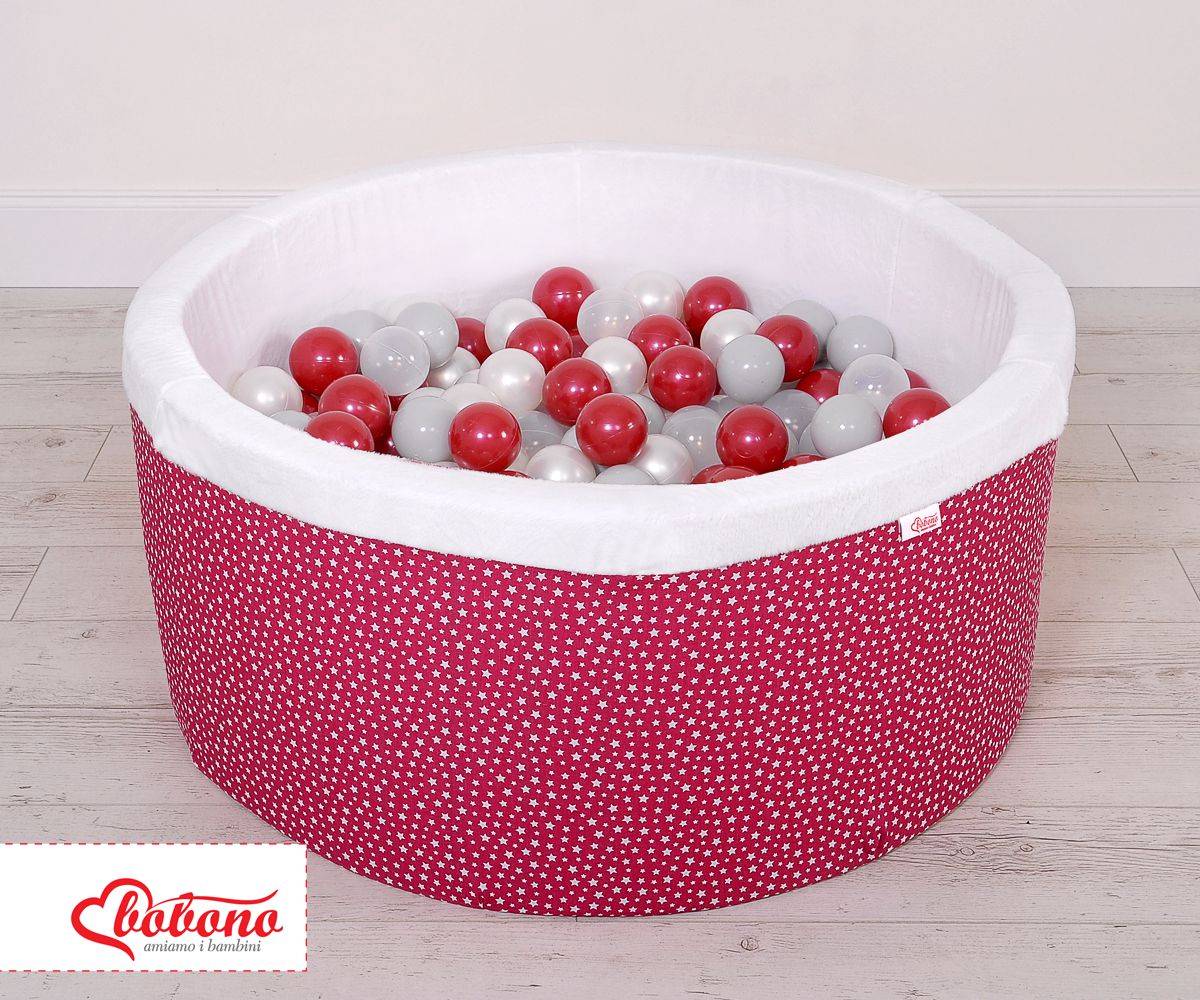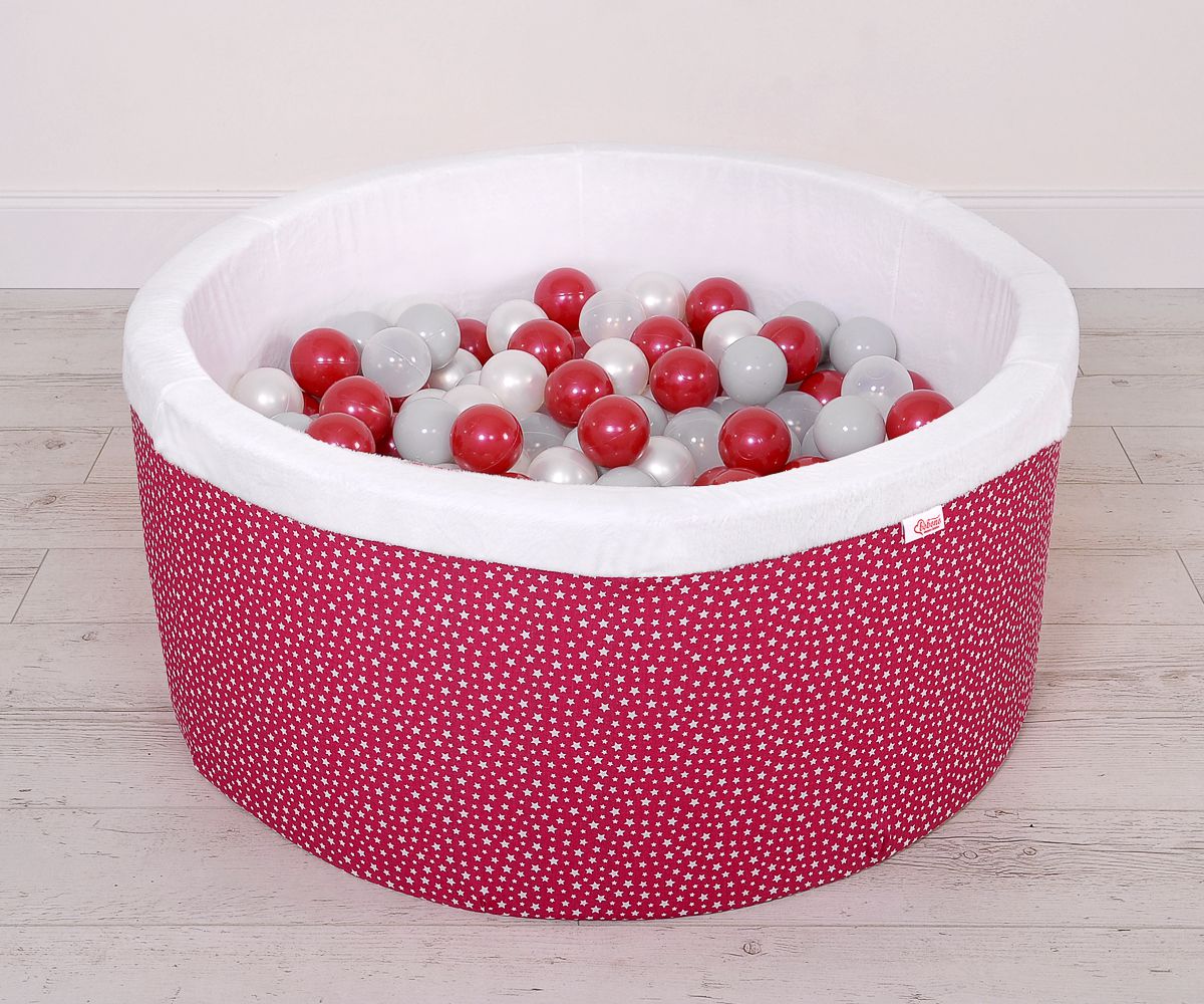 Ball-pit minky with balls 200pcs- wine red stars Ball pit with colorful balls. It is suitable for playing both at home and in the open air.