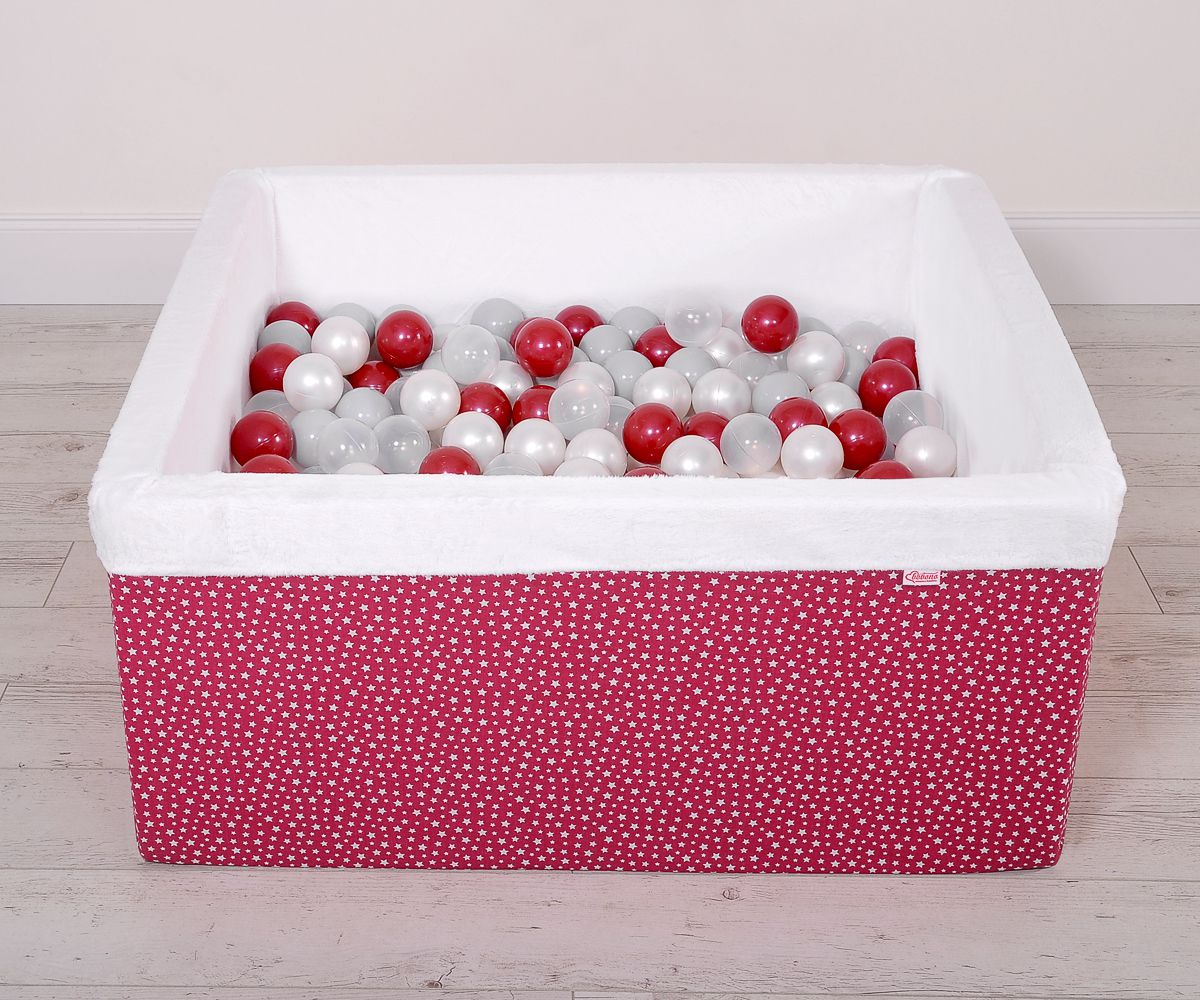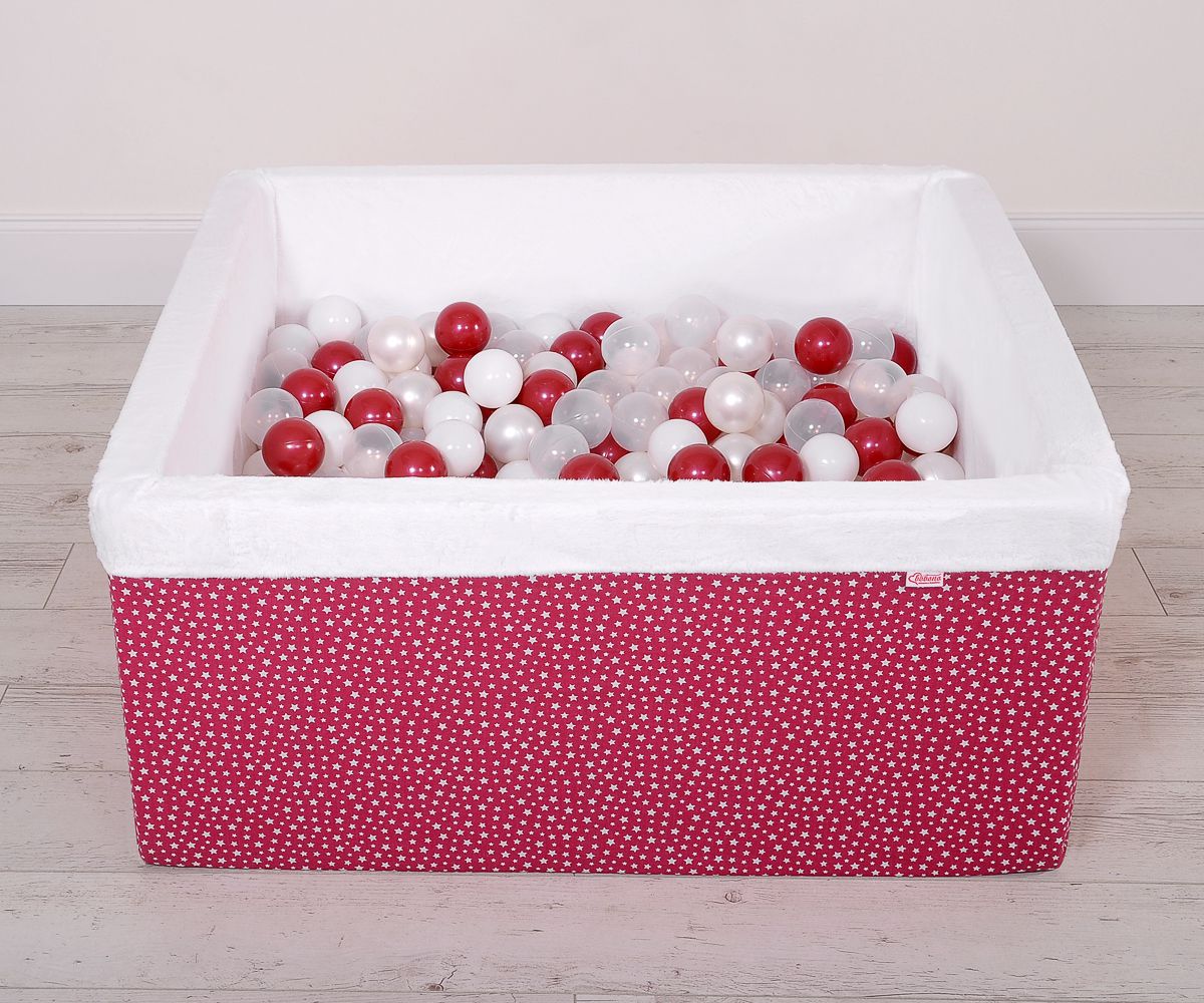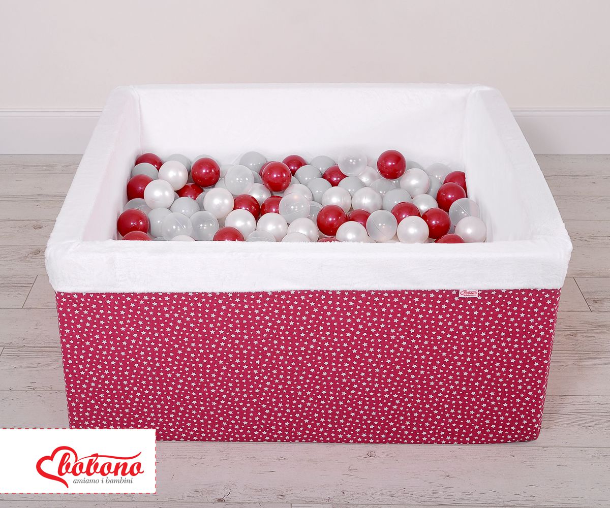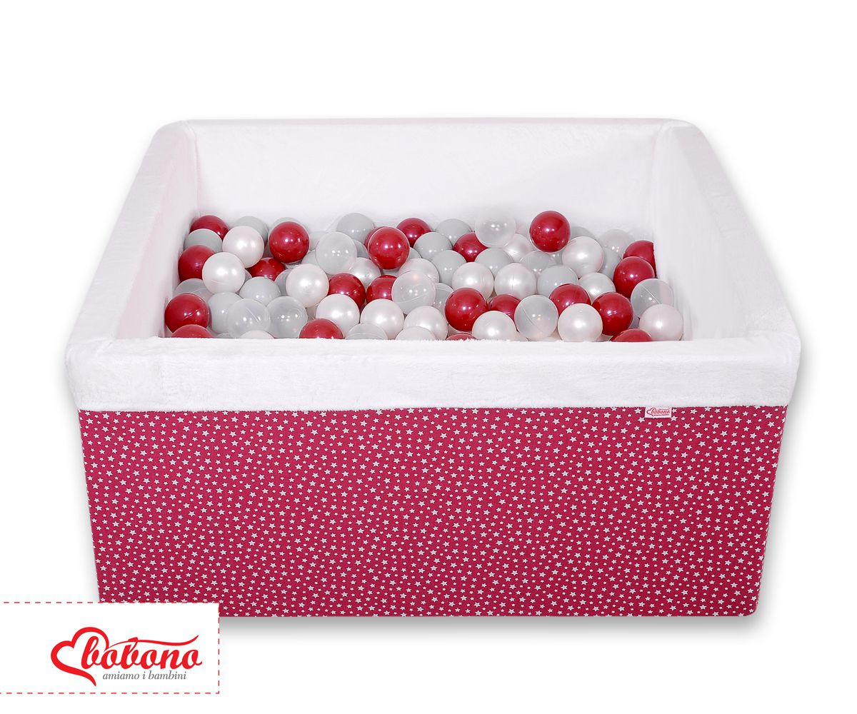 Ball-pit minky with balls 200pcs - wine red stars Ball pit suitable for playing both at home and in the open air. It is ideal not only for fun but it provides comfort, stimulation and helps develop hand eye coordination and it is positive for the child's development.