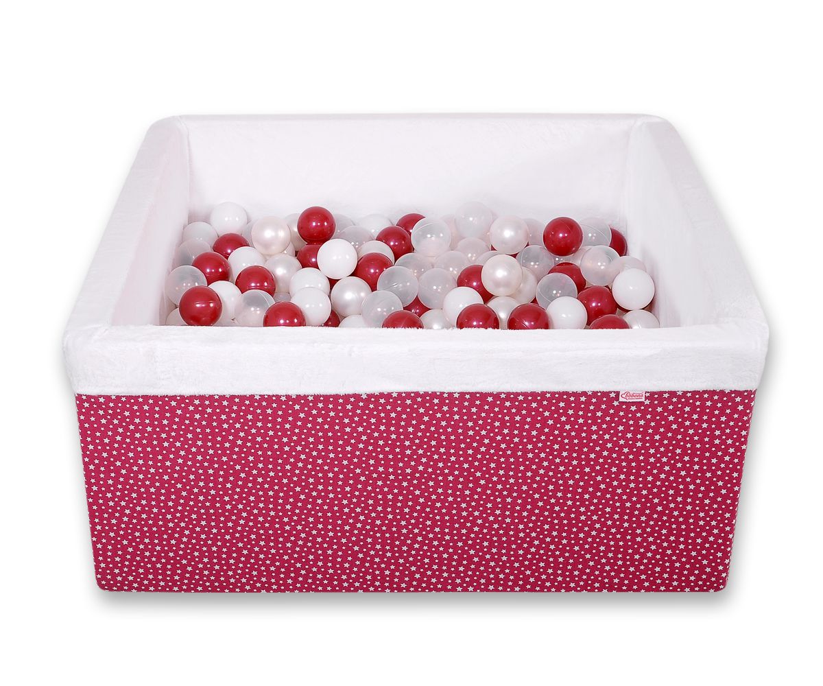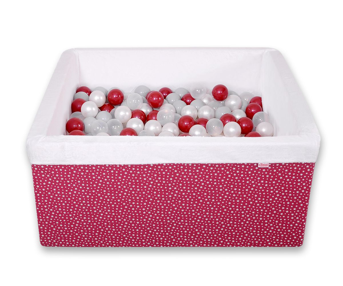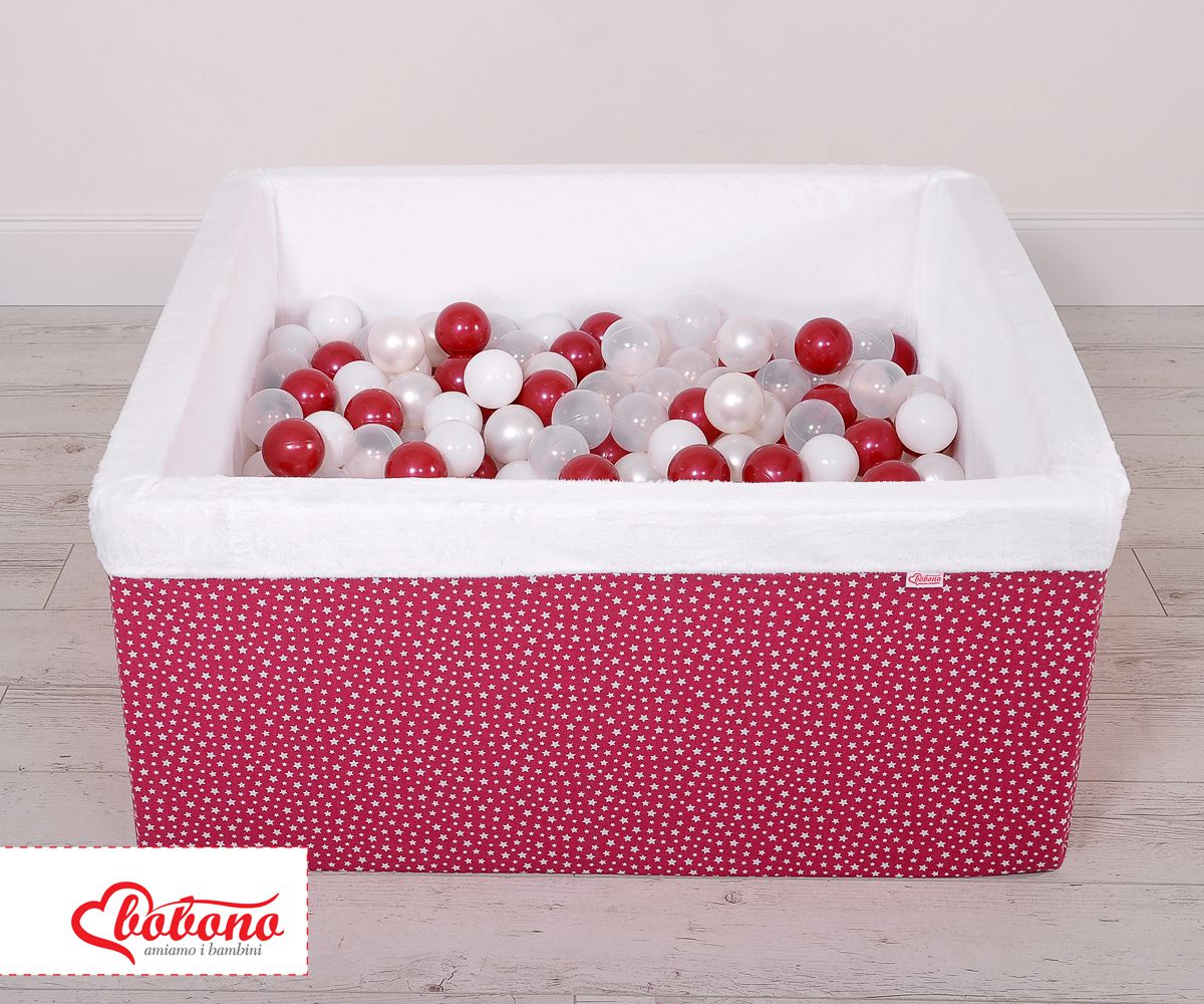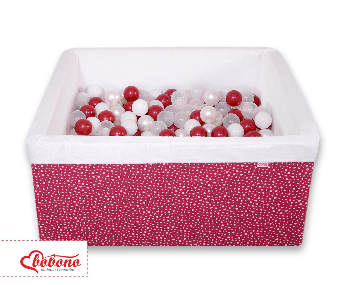 Ball-pit minky with balls 200pcs - wine red stars Ball pit suitable for playing both at home and in the open air. It is ideal not only for fun but it provides comfort, stimulation and helps develop hand eye coordination and it is positive for the child's development.