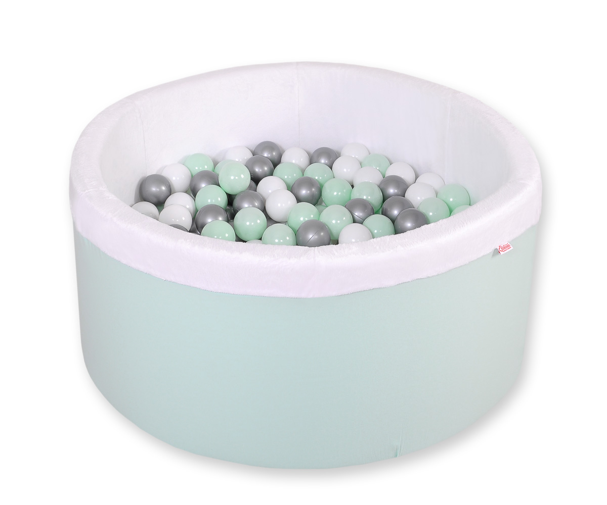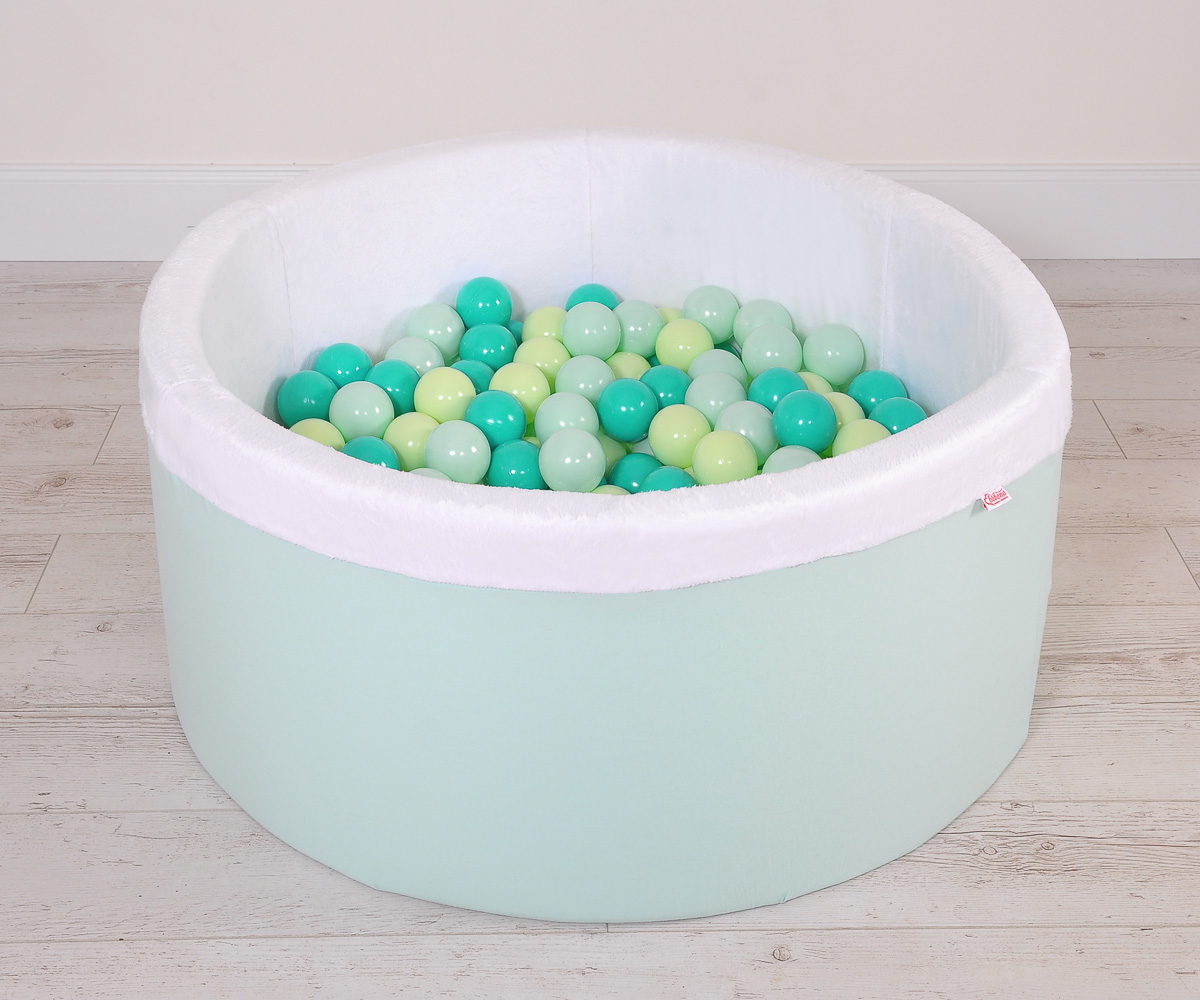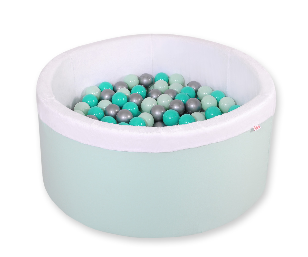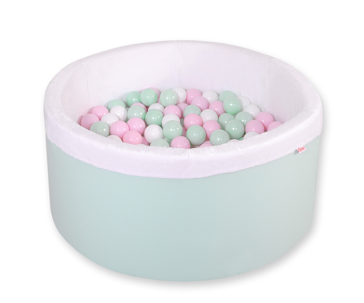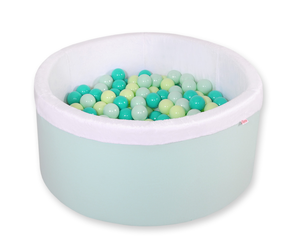 Ball-pit minky with balls 200st- mint Ball pit with colorful balls. It is suitable for playing both at home and in the open air. It is ideal not only for fun but it provides comfort, stimulation and helps develop hand eye coordination and it is positive for the child's development.