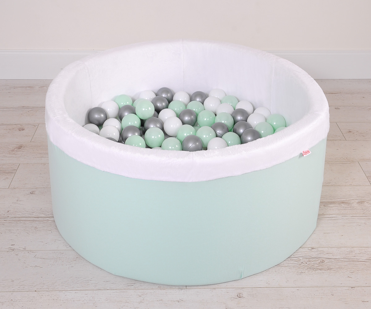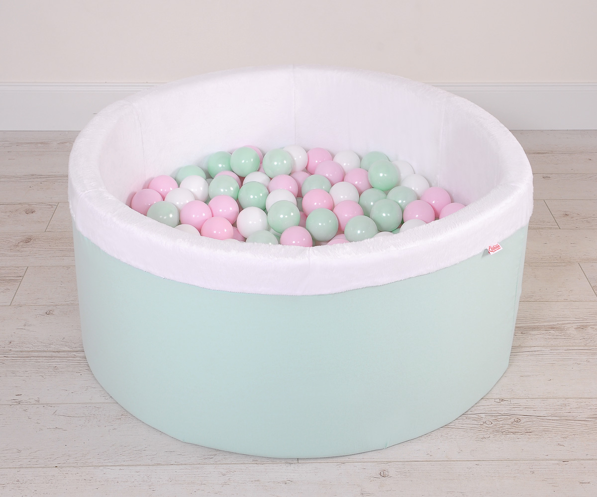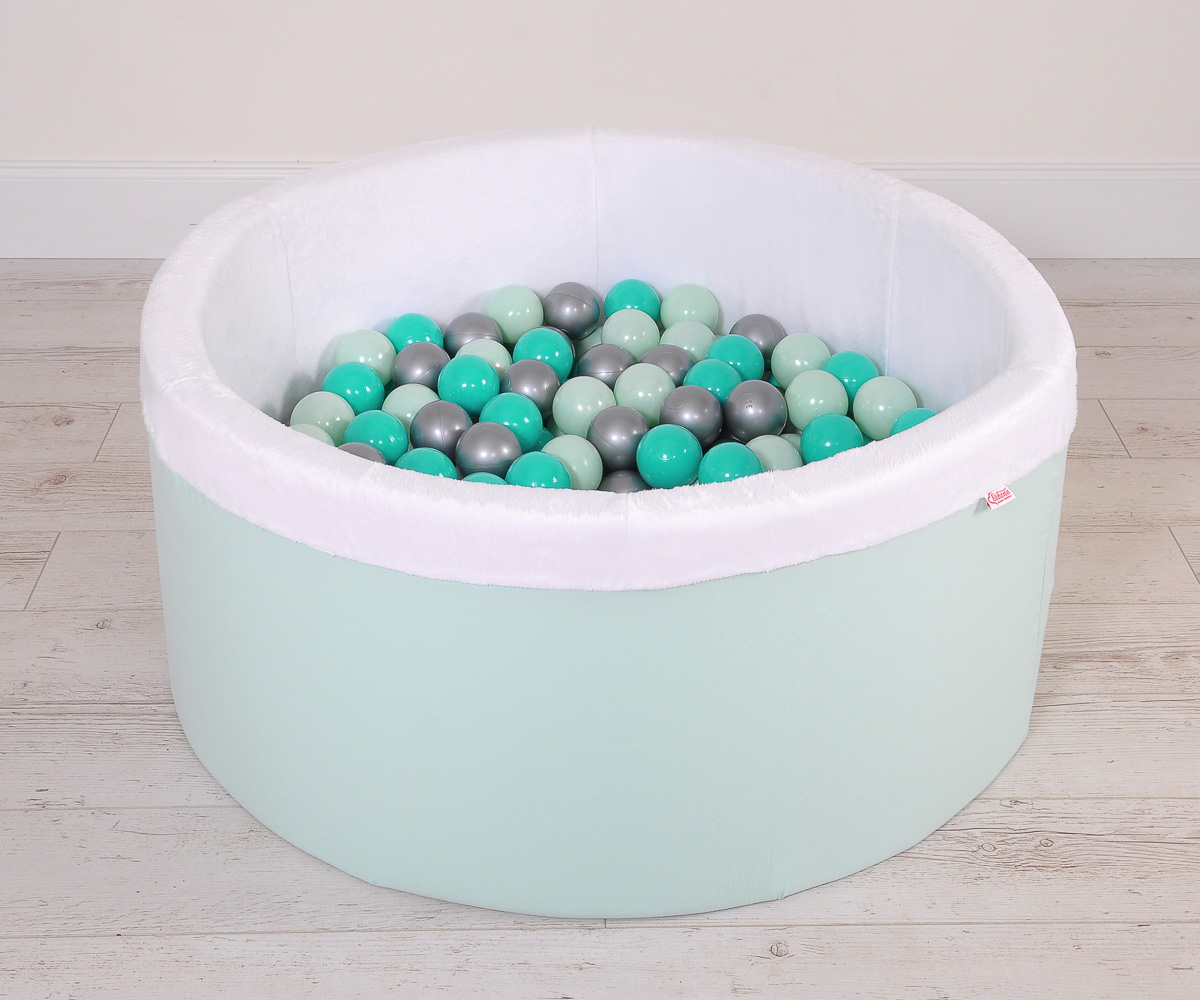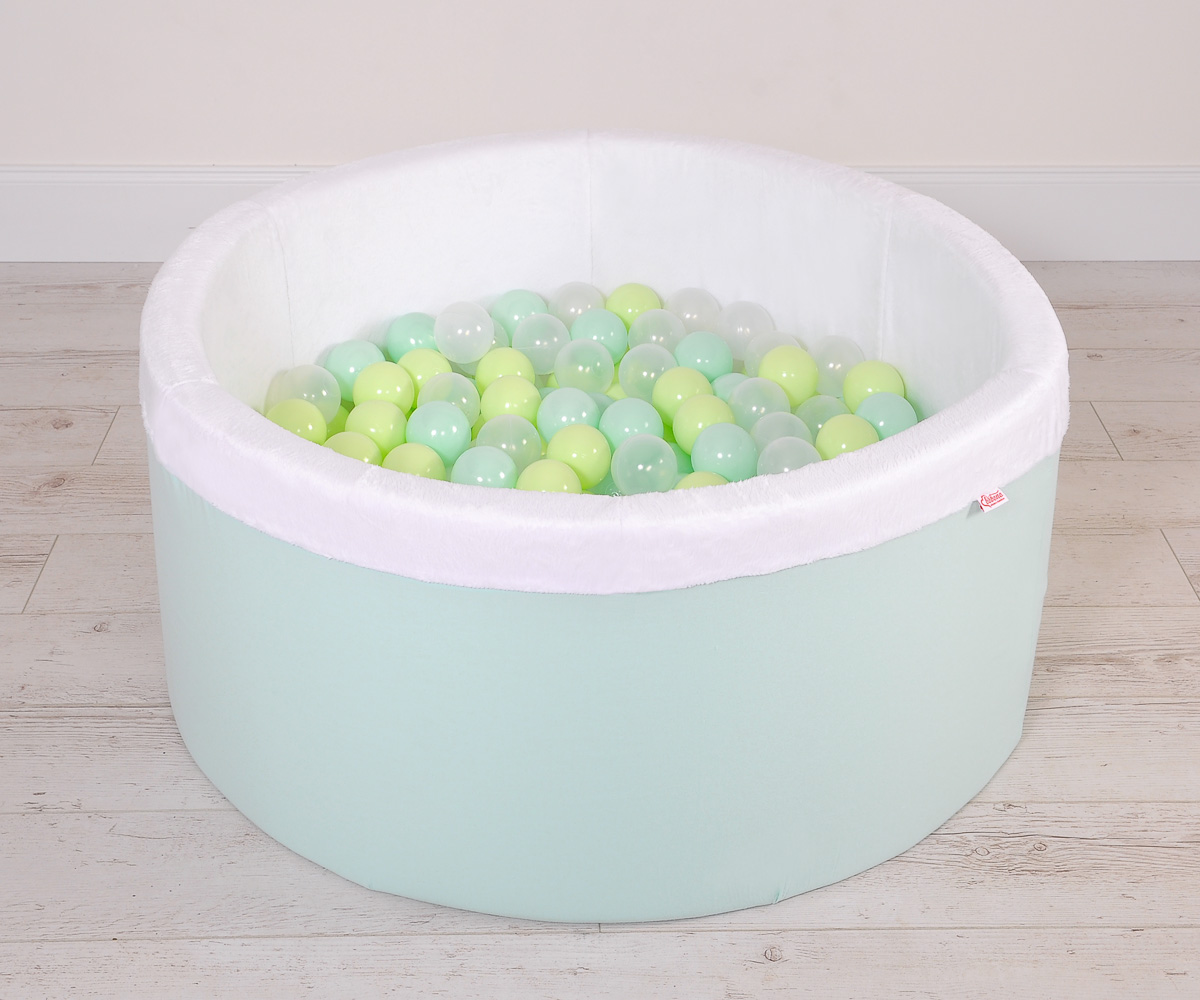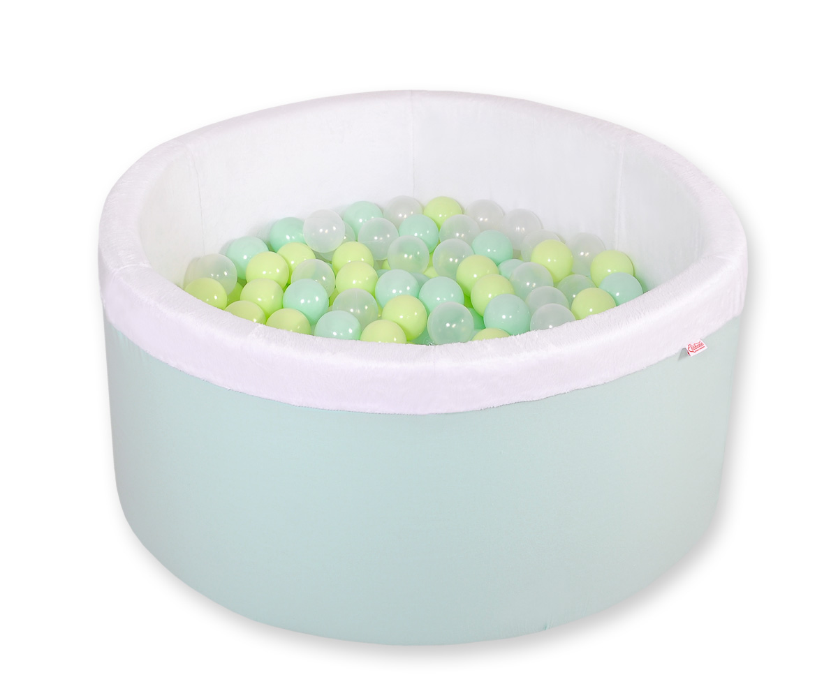 Ball-pit minky with balls 200st- mint Ball pit with colorful balls. It is suitable for playing both at home and in the open air. It is ideal not only for fun but it provides comfort, stimulation and helps develop hand eye coordination and it is positive for the child's development.