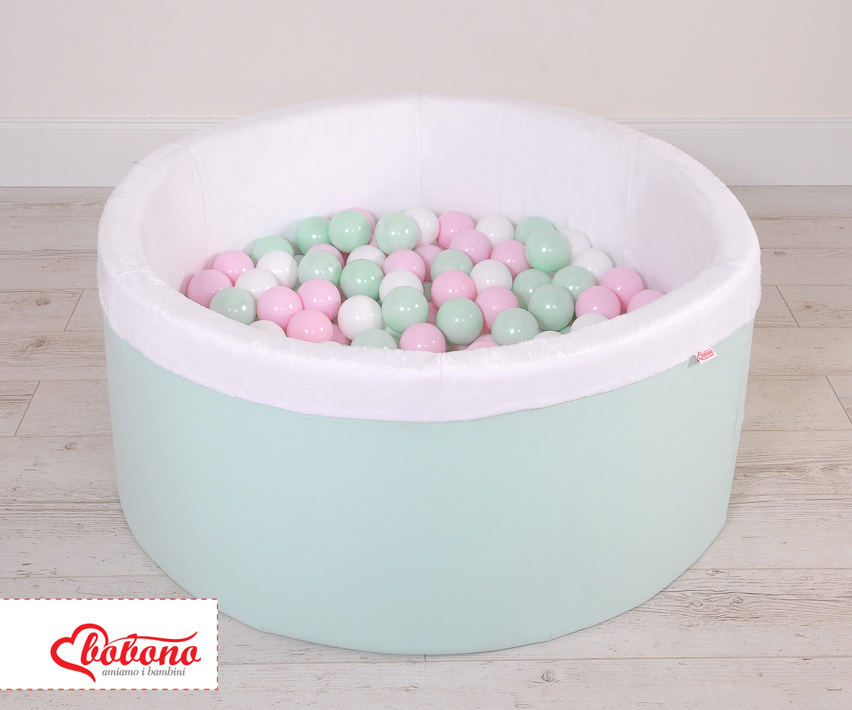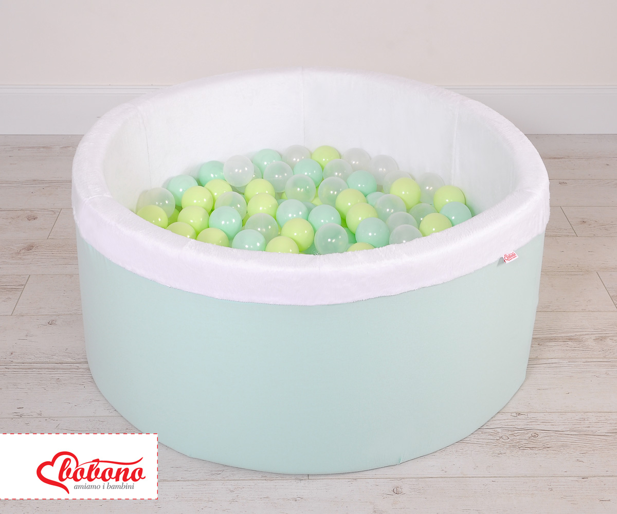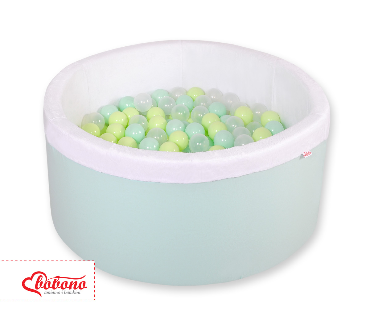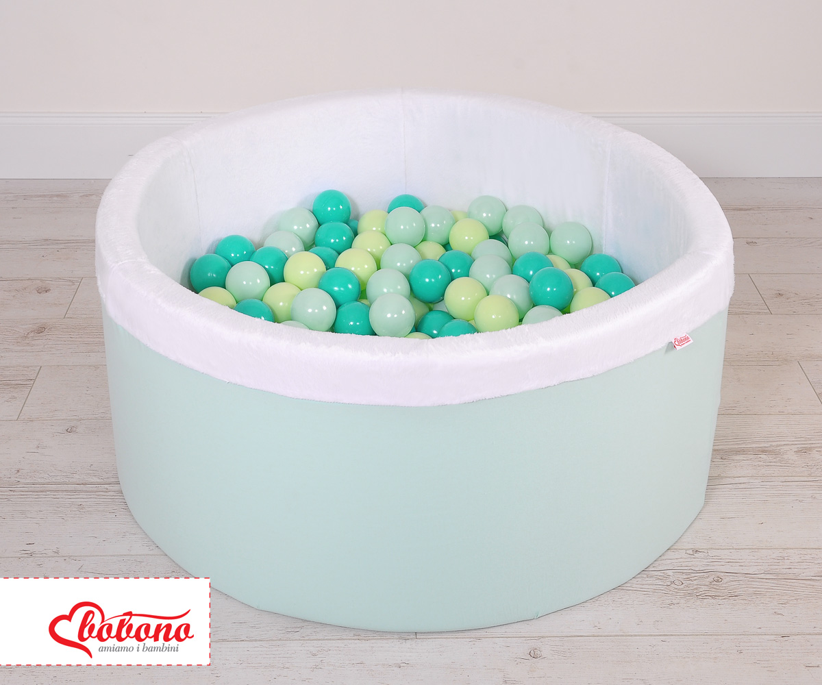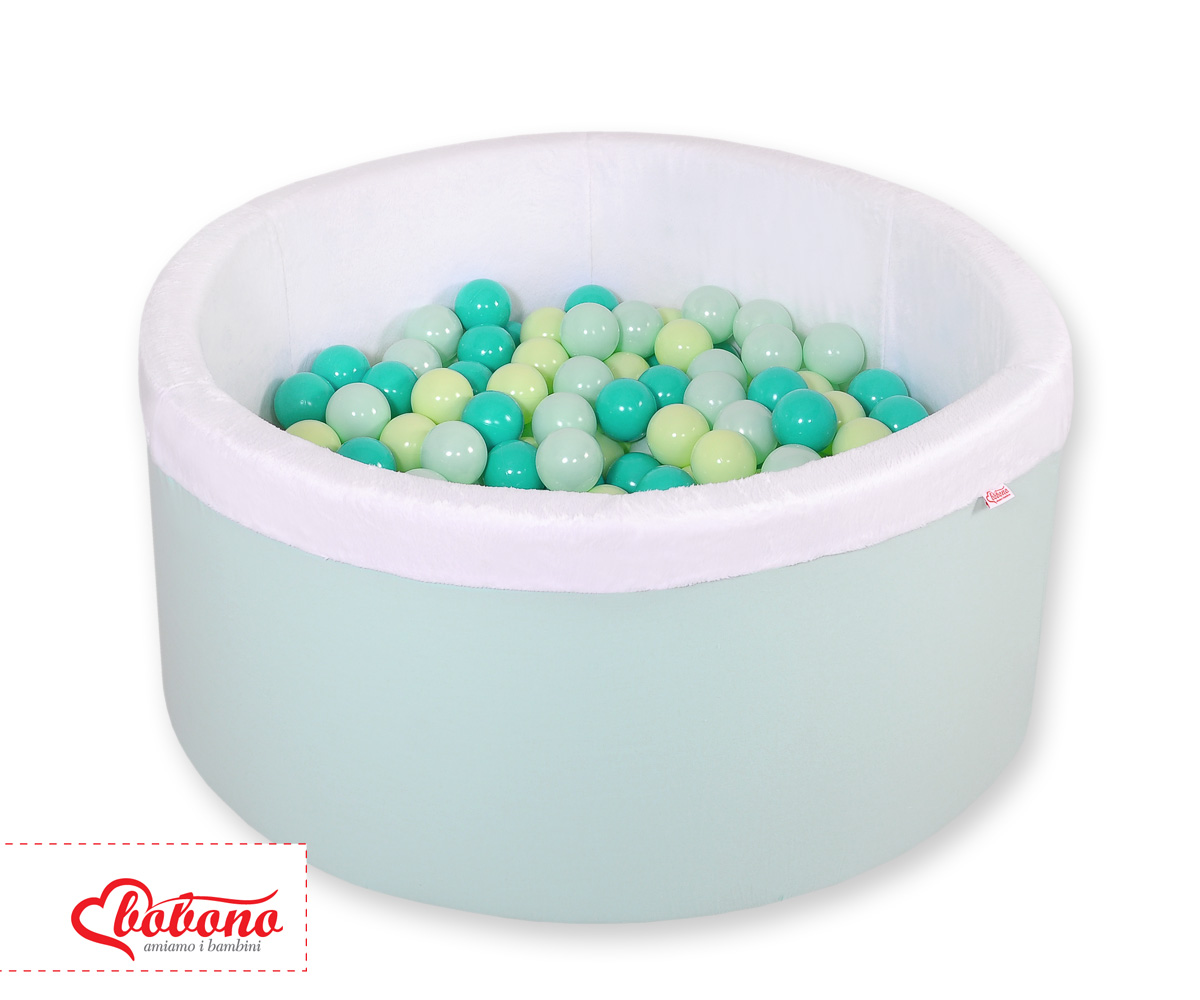 Ball-pit minky with balls 200st- mint Ball pit with colorful balls. It is suitable for playing both at home and in the open air. It is ideal not only for fun but it provides comfort, stimulation and helps develop hand eye coordination and it is positive for the child's development.