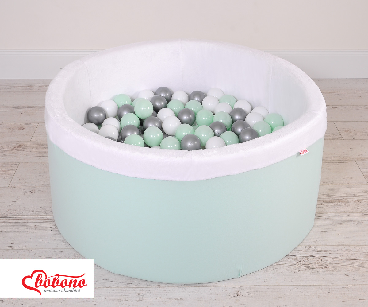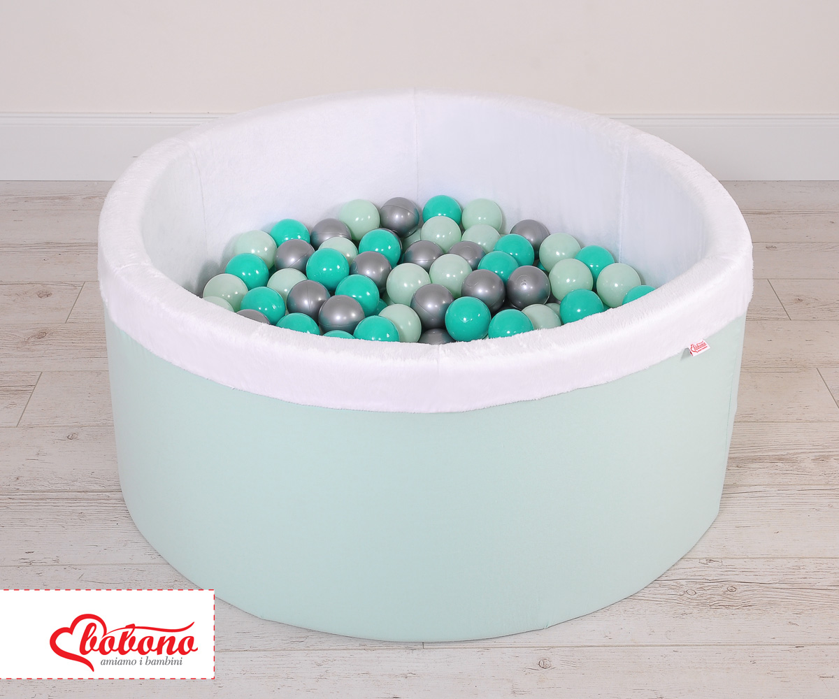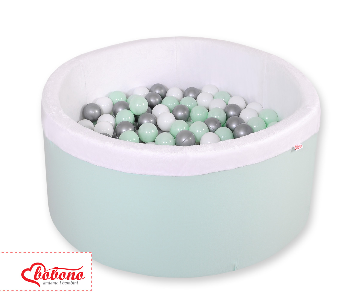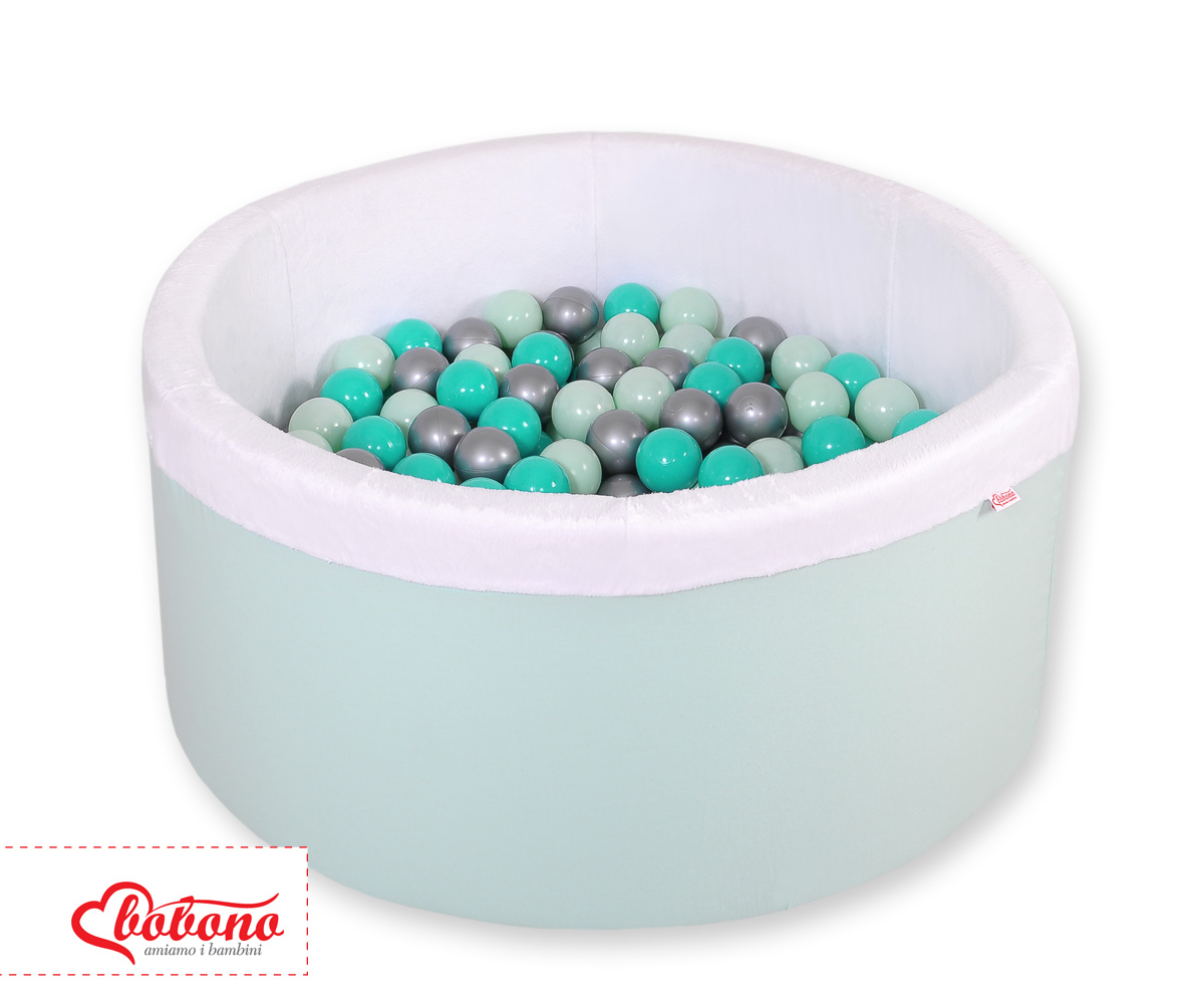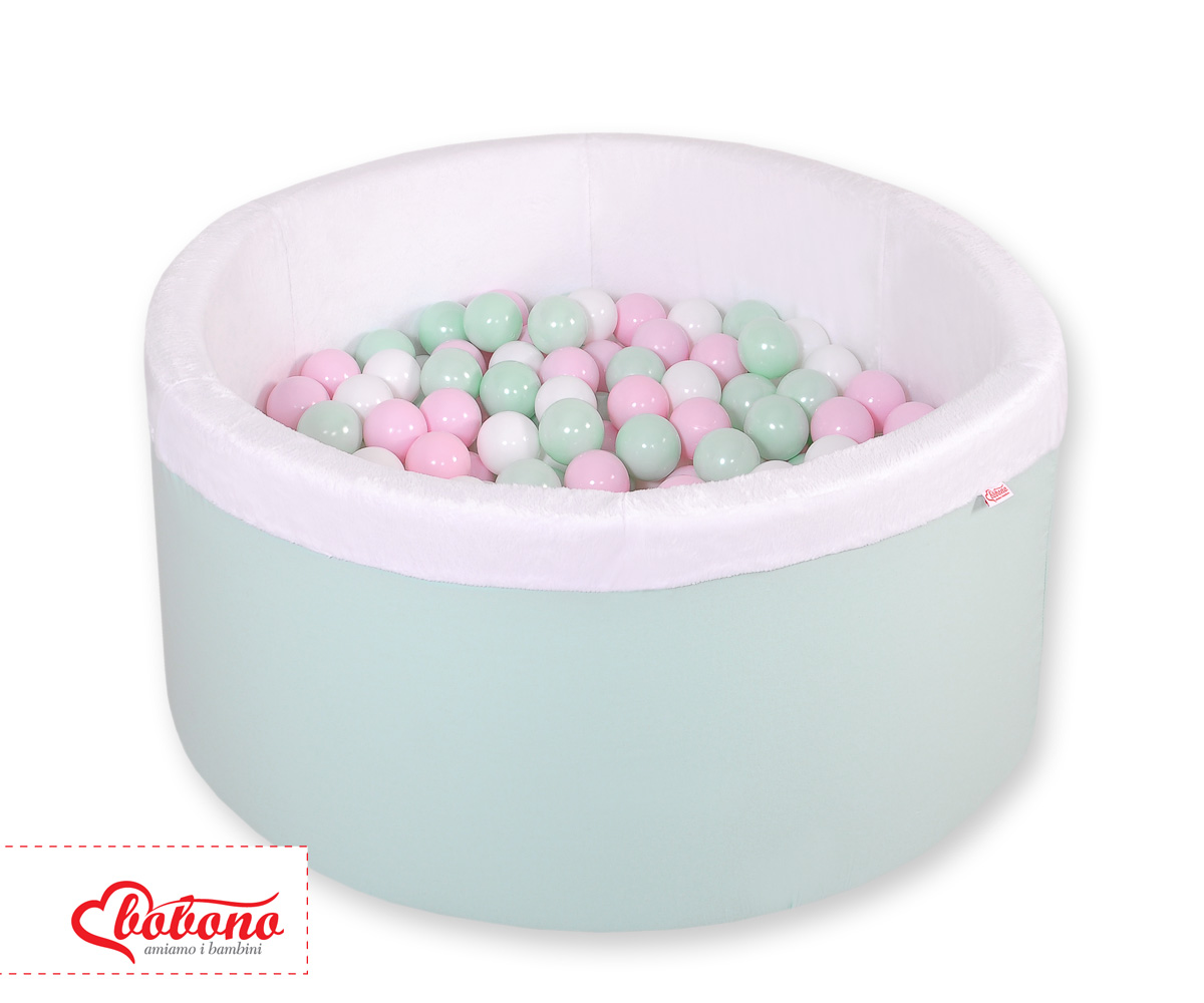 Ball-pit minky with balls 200st- mint Ball pit with colorful balls. It is suitable for playing both at home and in the open air. It is ideal not only for fun but it provides comfort, stimulation and helps develop hand eye coordination and it is positive for the child's development.