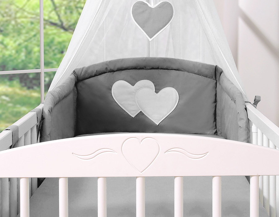 Bedding set 11-pcs with canopy and Holder - Hanging Hearts anthracite In the lovingly designed bedding it wonderful to sleep. Skin-friendly quality invites you to dream.