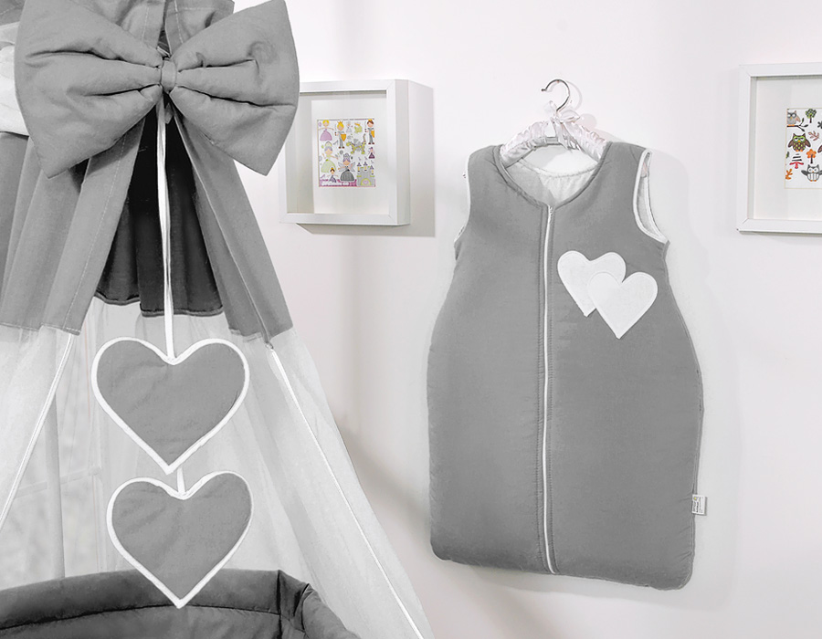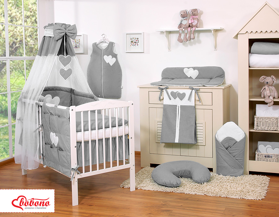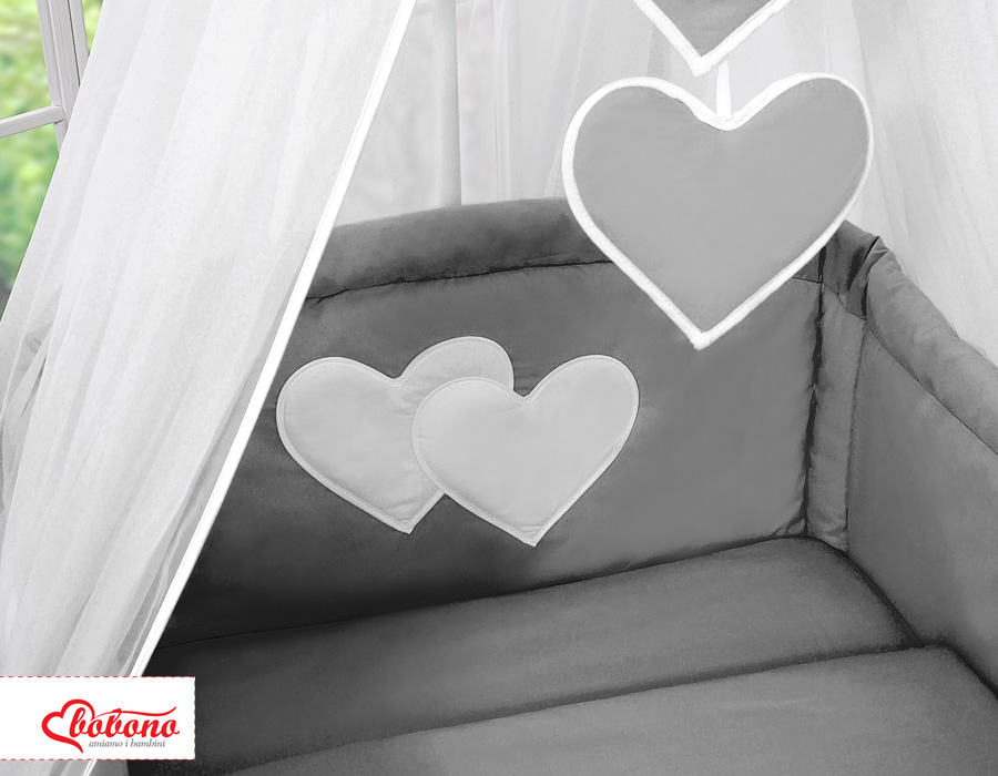 For cot 60x120cm. Anthracite Hearts Hanging Holder And Canopy With 11-pcs Bedding
