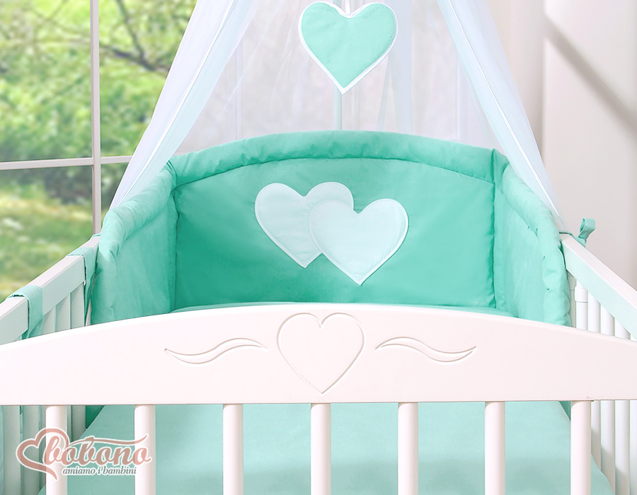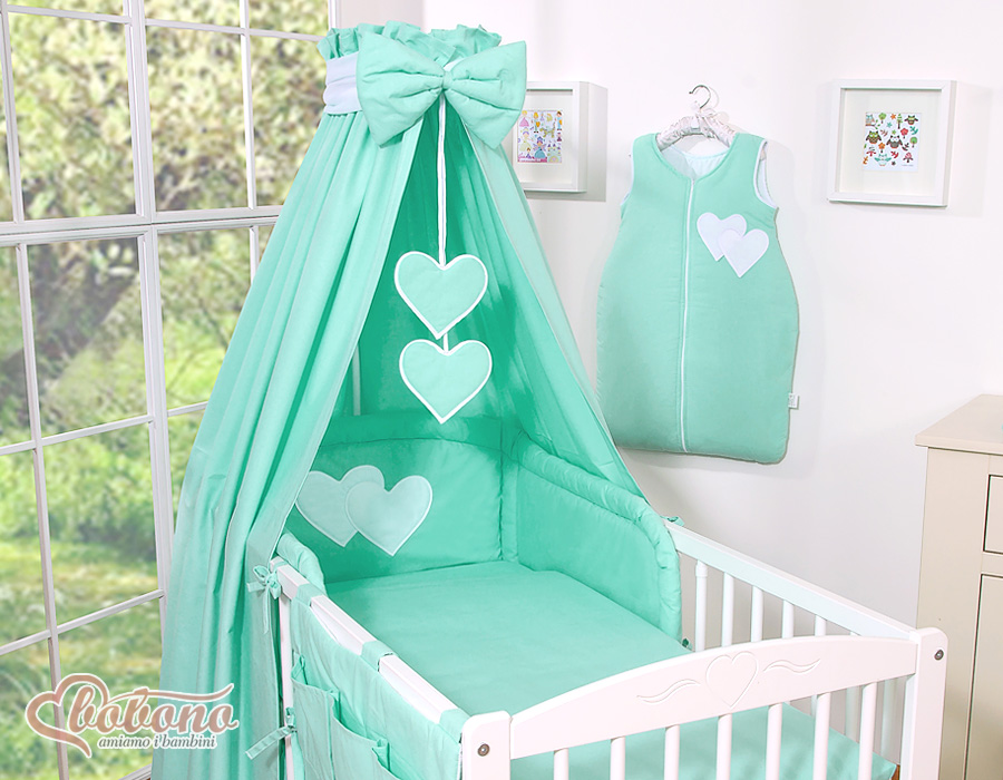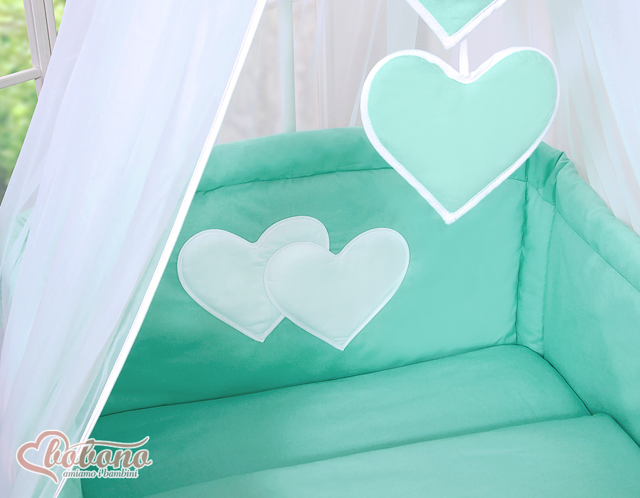 Baby Shop » Bedding sets for cots and beds » Collection HEARTS » Bedding sets for cot 120cm » Bedding set 11-pcs with canopy » Bedding set 11-pcs with canopy and Holder - Hanging Hearts mint
