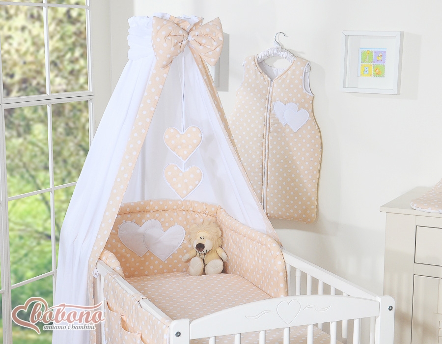 Bedding set 11-pcs with canopy and Holder - Hanging Hearts white dots on beigeBedding set 11-pcs with canopy and Holder - Hanging Hearts white dots on beigeBedding set 11-pcs with canopy and Holder - Hanging Hearts white dots on beigeBedding set 11-pcs with canopy and Holder - Hanging Hearts white dots on beige