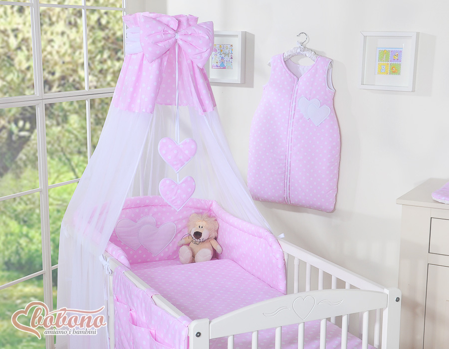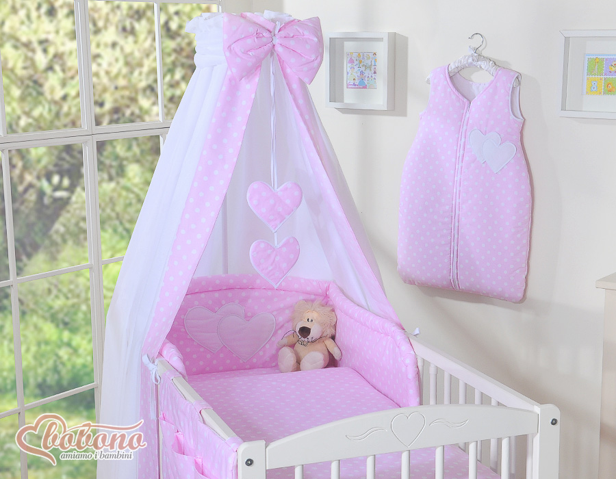 Bedding set 11-pcs with canopy and Holder - Hanging Hearts white dots on pinkBedding set 11-pcs with canopy and Holder - Hanging Hearts white dots on pinkBedding set 11-pcs with canopy and Holder - Hanging Hearts white dots on pinkBedding set 11-pcs with canopy and Holder - Hanging Hearts white dots on pink