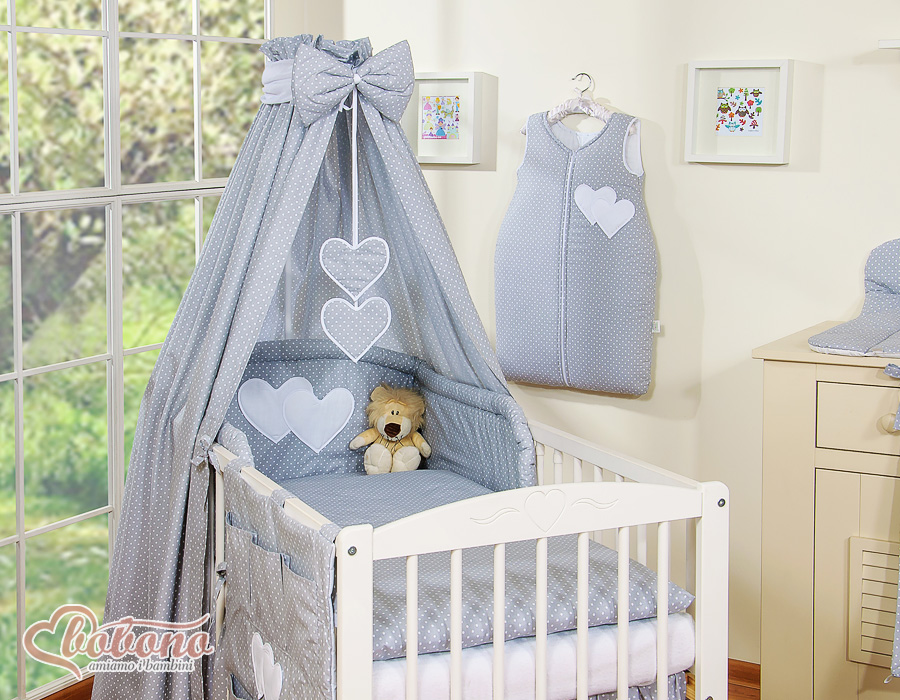 Bedding set 11-pcs with canopy and Holder - Hanging Hearts white polka dots on GrayBedding set 11-pcs with canopy and Holder - Hanging Hearts white polka dots on GrayBedding set 11-pcs with canopy and Holder - Hanging Hearts white polka dots on GrayBedding set 11-pcs with canopy and Holder - Hanging Hearts white polka dots on GrayBedding set 11-pcs with canopy and Holder - Hanging Hearts white polka dots on Gray