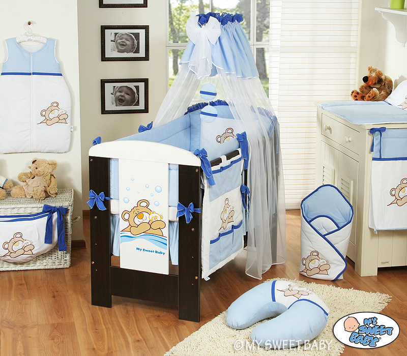 Bedding set 11-pcs with canopy (L70)- Teddy Bear Barnaba blueBedding set 11-pcs with canopy (L70)- Teddy Bear Barnaba blueBedding set 11-pcs with canopy (L70)- Teddy Bear Barnaba blue