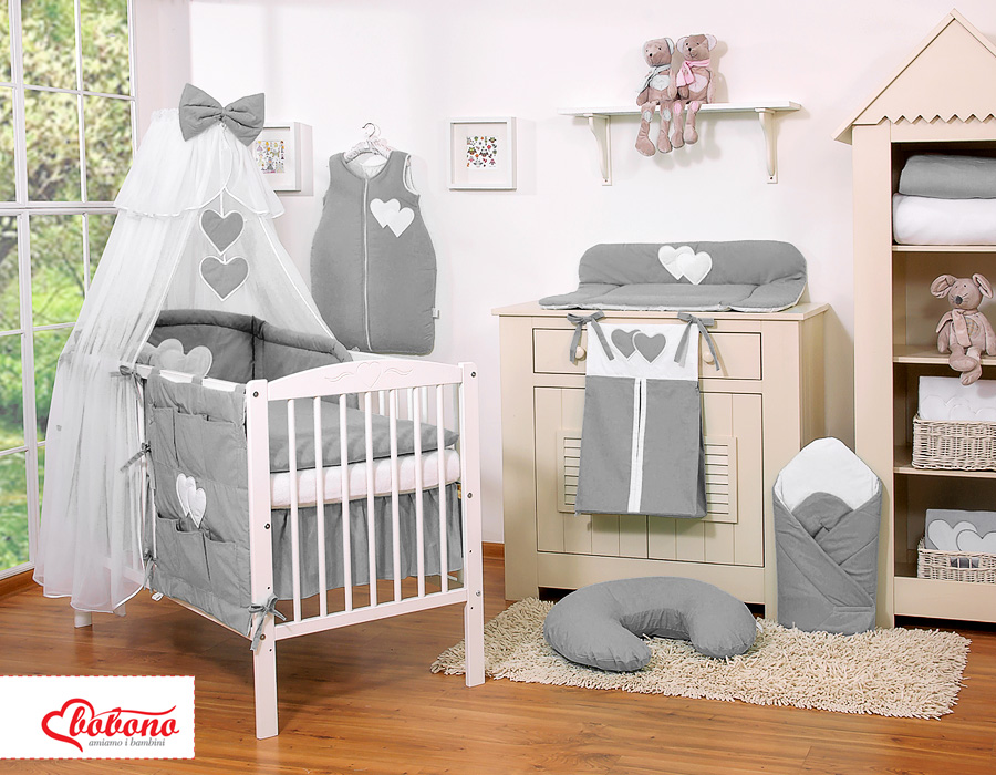 Bedding set 11-pcs with mosquito-net- Hanging Hearts anthracite In the lovingly designed bedding it wonderful to sleep. Skin-friendly quality invites you to dream.