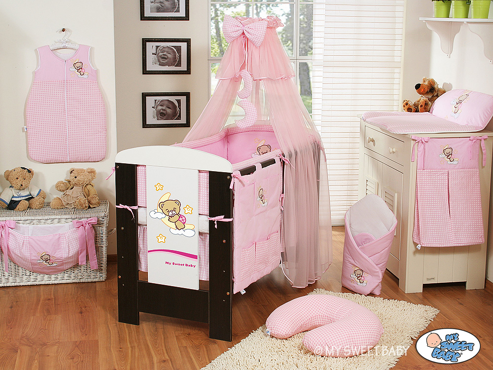 Baby Shop » Bedding sets for cots and beds » Collection GOOD NIGHT » Bedding sets for cot 120cm » Bedding set 11-pcs with Mosquito-net (L) » Bedding set 11-pcs with mosquito-net (L60)- Good night pink