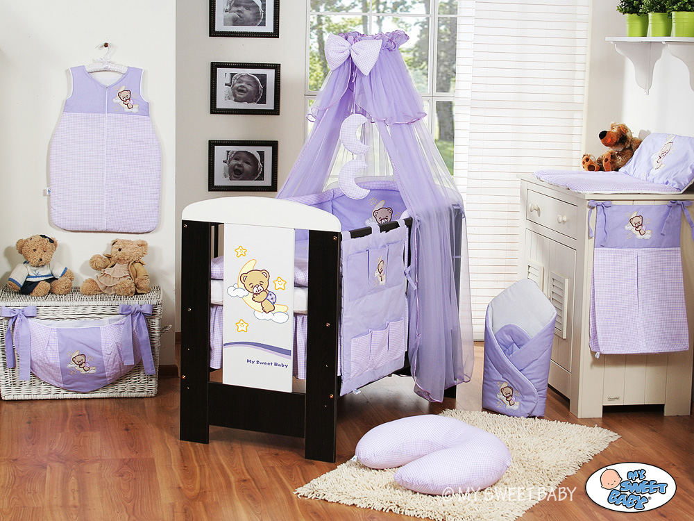 Baby Shop » Bedding sets for cots and beds » Collection GOOD NIGHT » Bedding sets for cot 120cm » Bedding set 11-pcs with Mosquito-net (S) » Bedding set 11-pcs with mosquito-net (S60)- Good night lilac