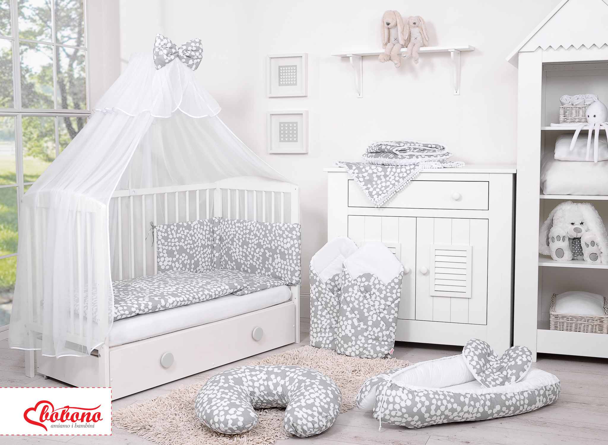 Baby Shop » Bedding sets for cots and beds » Collection FUN & JOY » Bedding sets for cot 120cm » Bedding set 5-pcs with mosquito-net » Bedding set 5-pcs bumper cases mosquito-net - bubbles gray