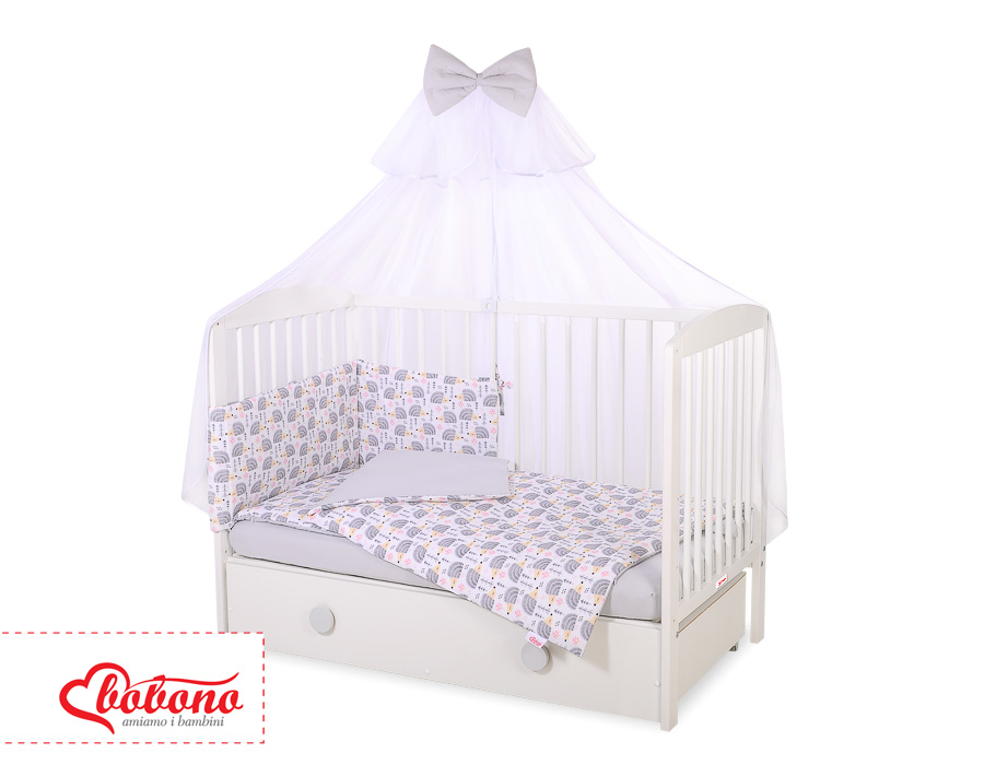 Baby Shop » Bedding sets for cots and beds » Collection FUN & JOY » Bedding sets for cot 120cm » Bedding set 5-pcs with mosquito-net » Bedding set 5-pcs bumper cases mosquito-net - hedgehogs Gray