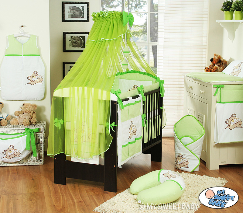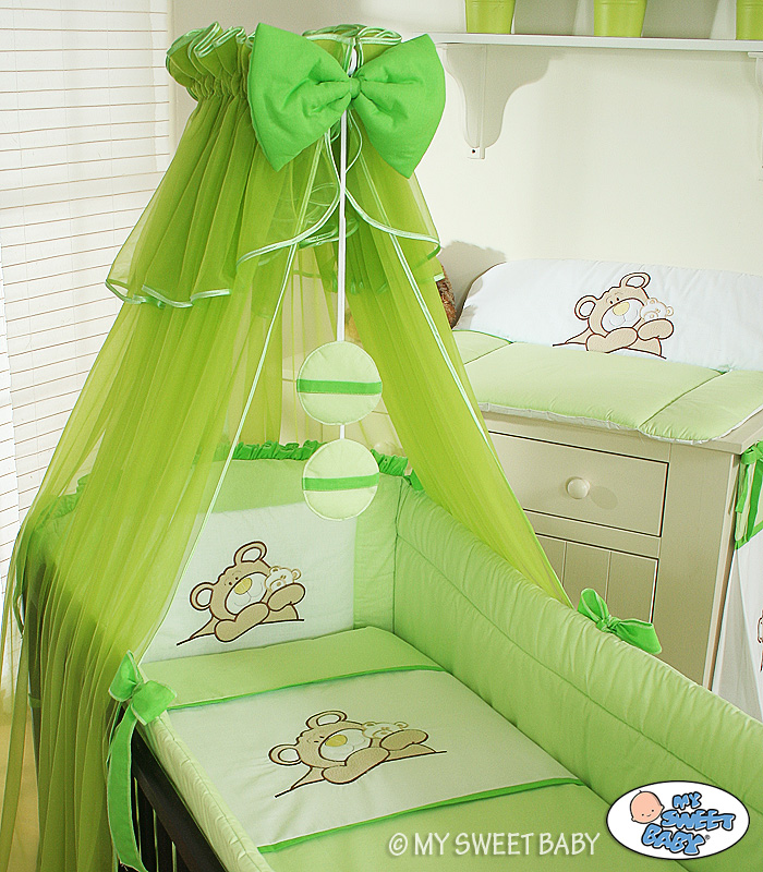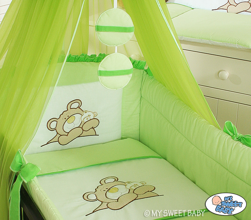 For cot 60x120cm. Green Barnaba Bear Teddy (L60)- Mosquito-net Cases Bumper 5-pcs Bedding