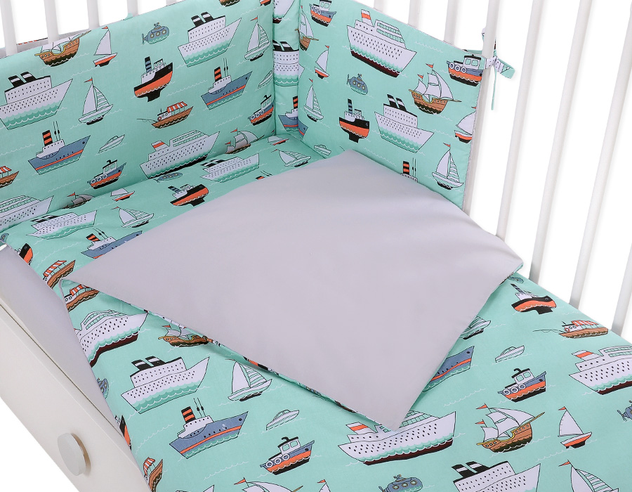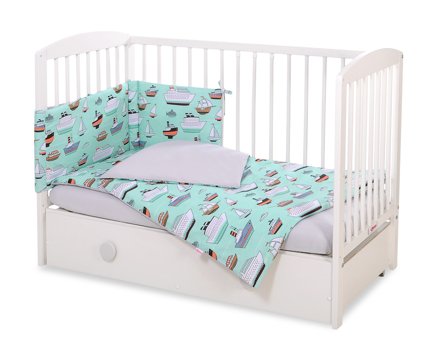 Baby Shop » Bedding sets for cots and beds » Collection FUN & JOY » Bedding sets for cot 120cm » Bedding set 5-pcs with mosquito-net » Bedding set 5-pcs bumper cases mosquito-net - mint ship