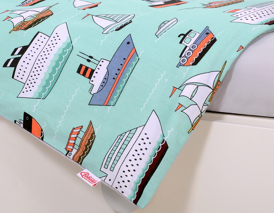 In the colorful bedding, spends the child a quiet night. High quality made of cotton.