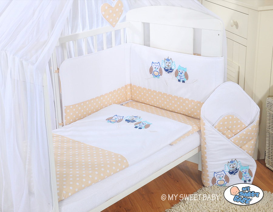 Bedding set 5-pcs bumper cases mosquito-net- Owls beige Bedding set 5 pcs with mosquito-net- Collection Owls Bigi Zibi & Adele