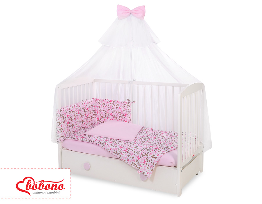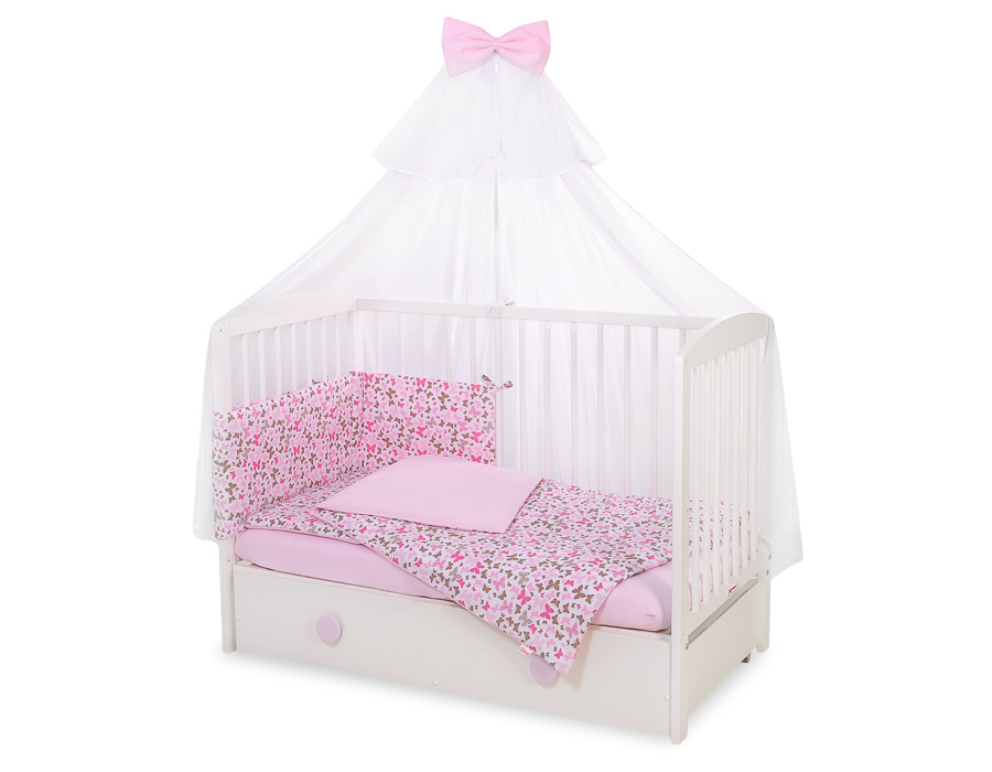 Baby Shop » Bedding sets for cots and beds » Collection FUN & JOY » Bedding sets for cot 120cm » Bedding set 5-pcs with mosquito-net » Bedding set 5-pcs bumper cases mosquito-net - pink butterflies