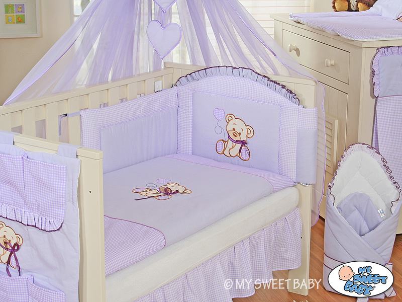 Bedding set 5-pcs z mosquito-net- Teddy Bear with bow lilac Bedding set 5 pcs with mosquito-net- Collection Teddy Bear with bow