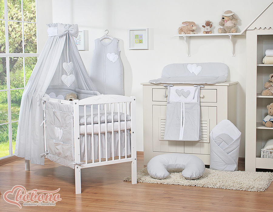 Baby Shop » Bedding sets for cots and beds » Collection HEARTS » Bedding sets for cot 120cm » Bedding set 7-pcs with canopy » Bedding set 7-pcs with canopy- Hanging Hearts Gray
