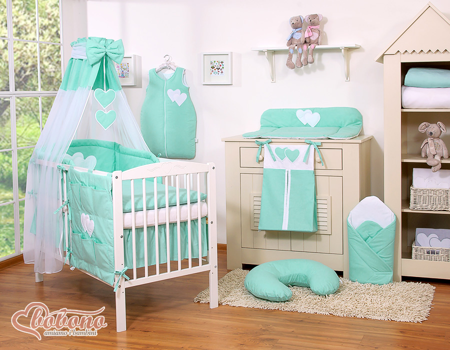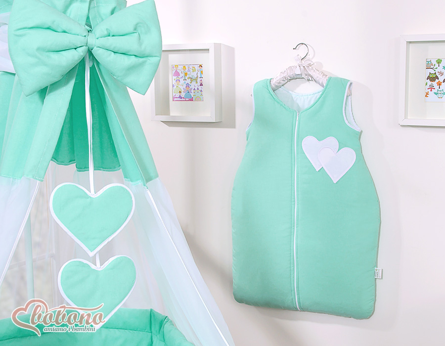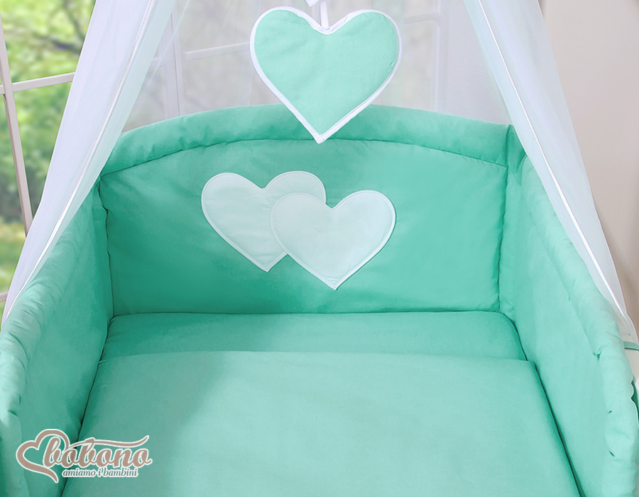 Baby Shop » Bedding sets for cots and beds » Collection HEARTS » Bedding sets for cot 120cm » Bedding set 7-pcs with canopy » Bedding set 7-pcs with canopy- Hanging Hearts mint