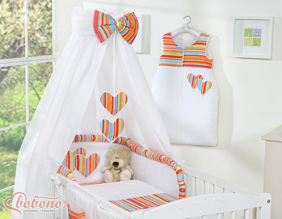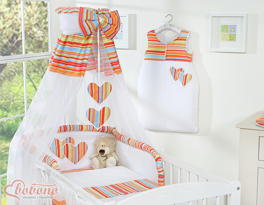 Baby Shop » Bedding sets for cots and beds » Collection HEARTS » Bedding sets for cot 120cm » Bedding set 7-pcs with canopy » Bedding set 7-pcs with canopy- Hanging Hearts orange stripes